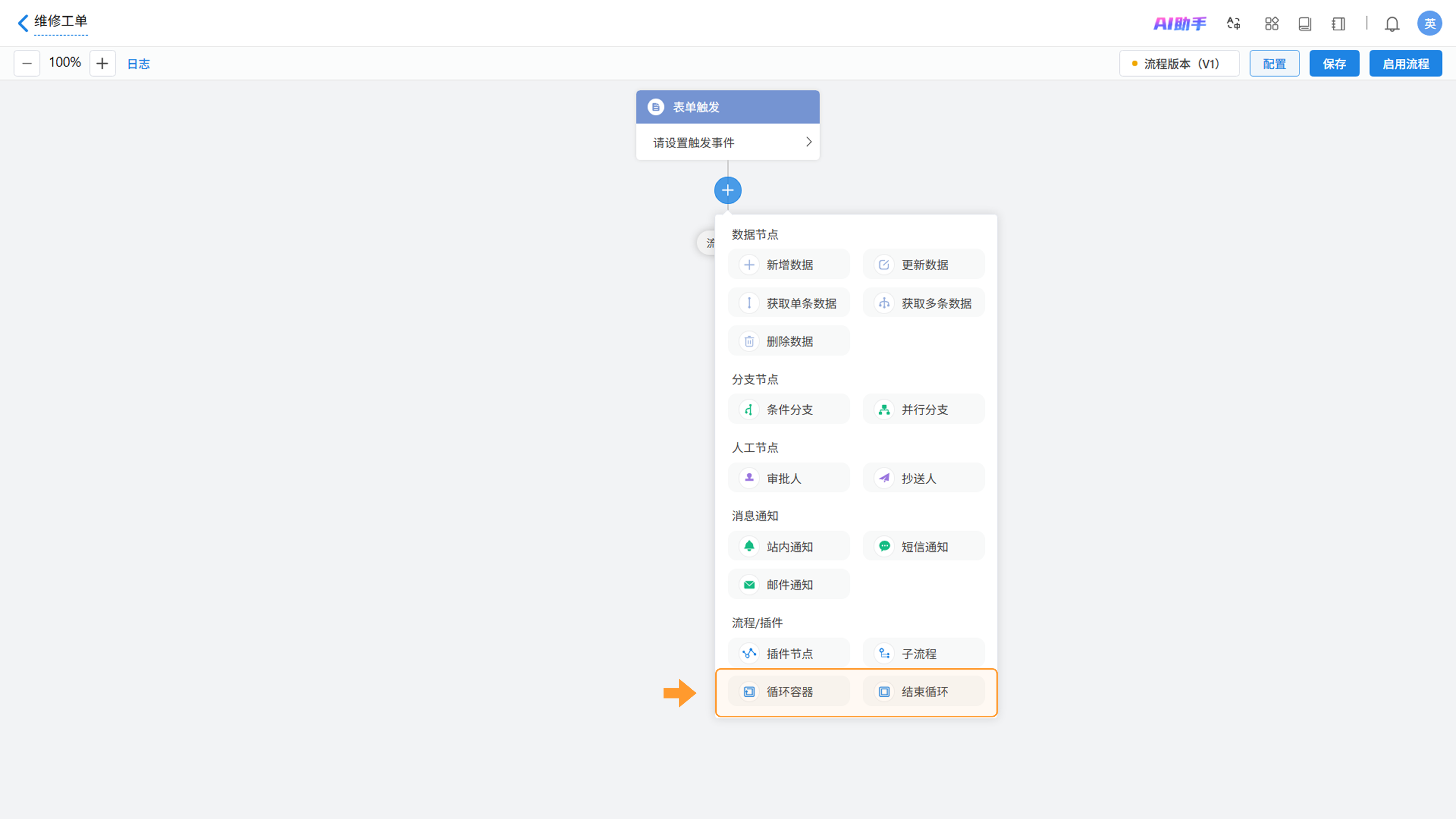 本期工作流新增“循环容器”与“结束循环”节点,支持对多条数据进行批量自动化的重复处理,让批量任务执行更高效。