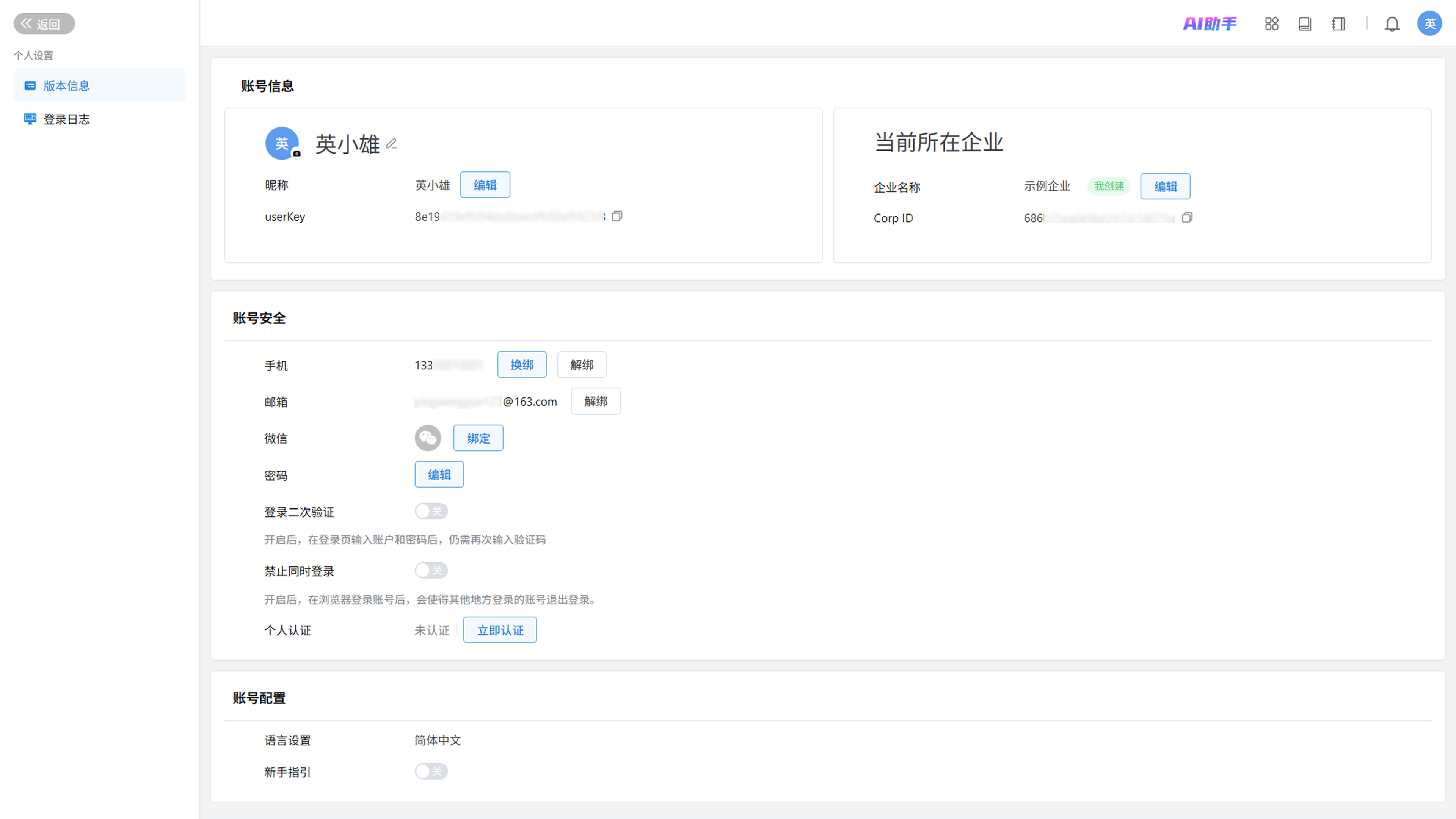 个人设置全面升级,分离个人信息设置与企业信息配置,减少信息干扰,提升操作流畅度。