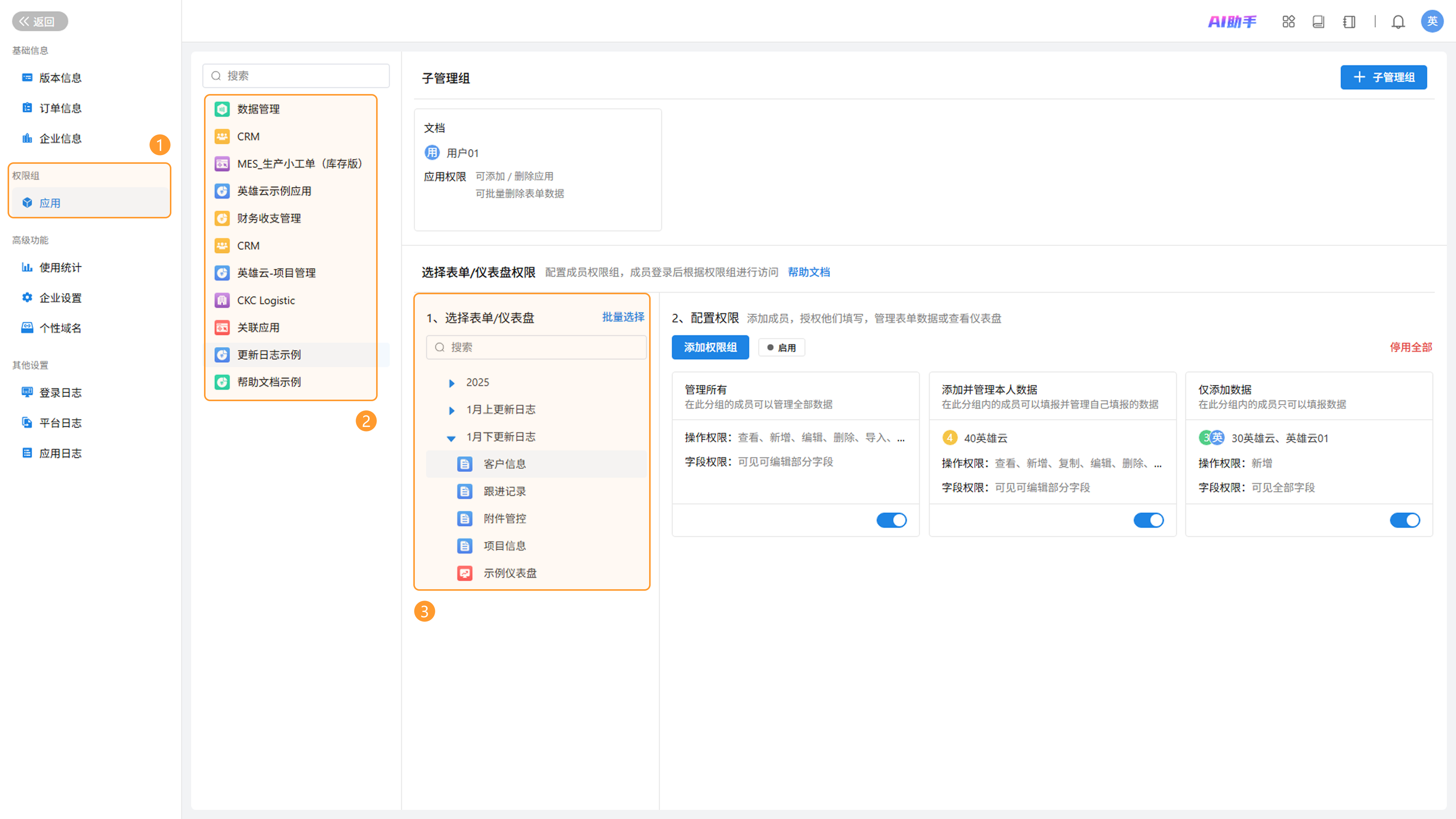 企业管理后台新增「权限组」页面,支持按应用按表单快速核查权限分配情况,提升权限管理效率。