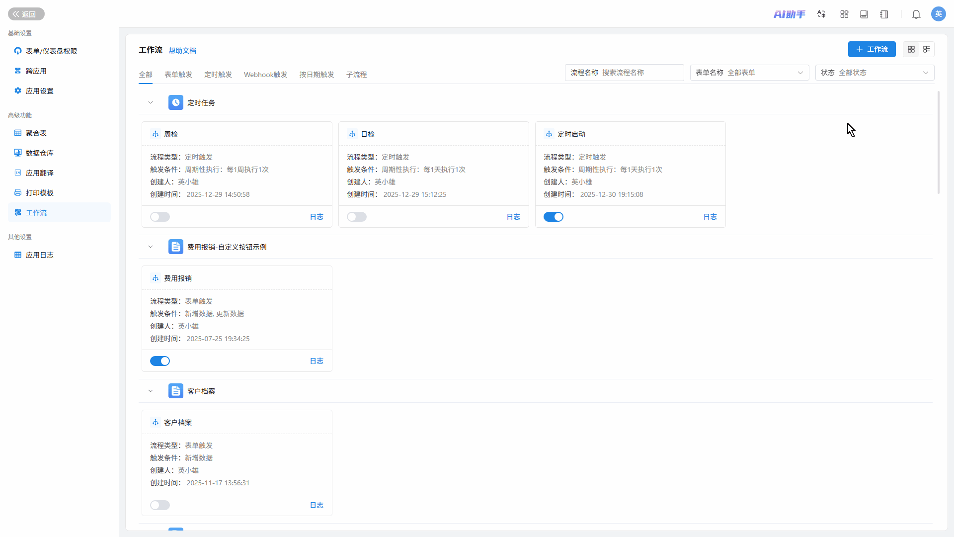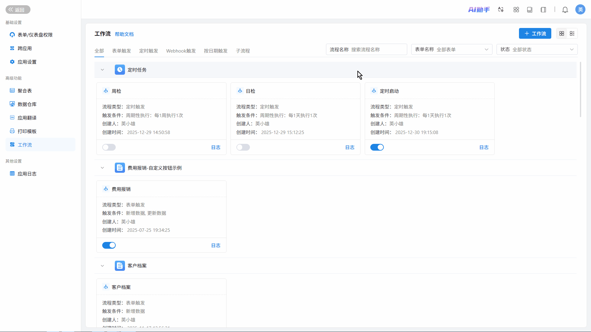 新增「卡片视图」与「列表视图」切换功能,可自定义工作流展示样式,提升管理效率。