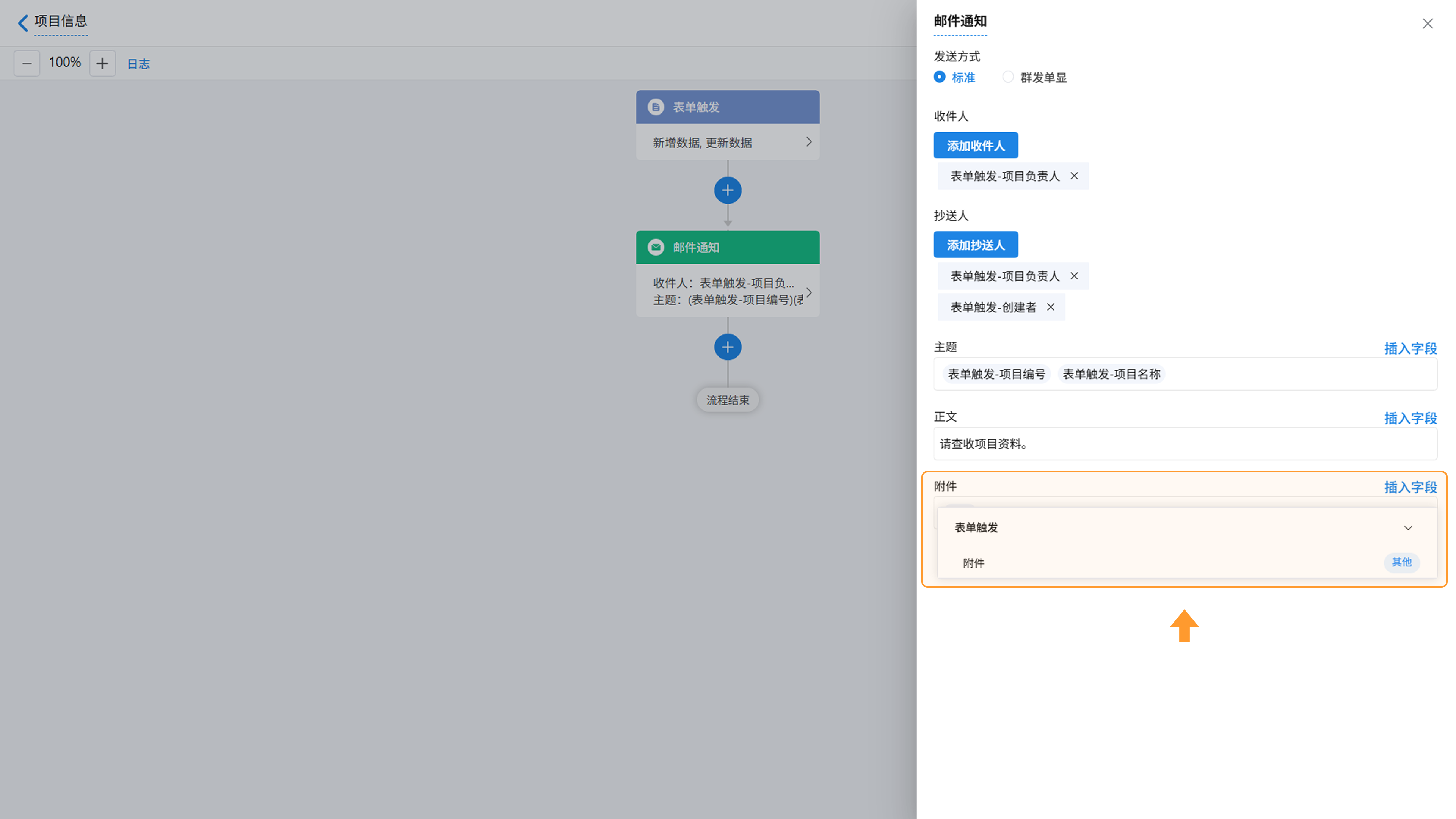 工作流邮箱节点新增附件发送能力,可关联表单附件字段文件,实现附件随流程同步传递,达成全程电子化闭环管理。
