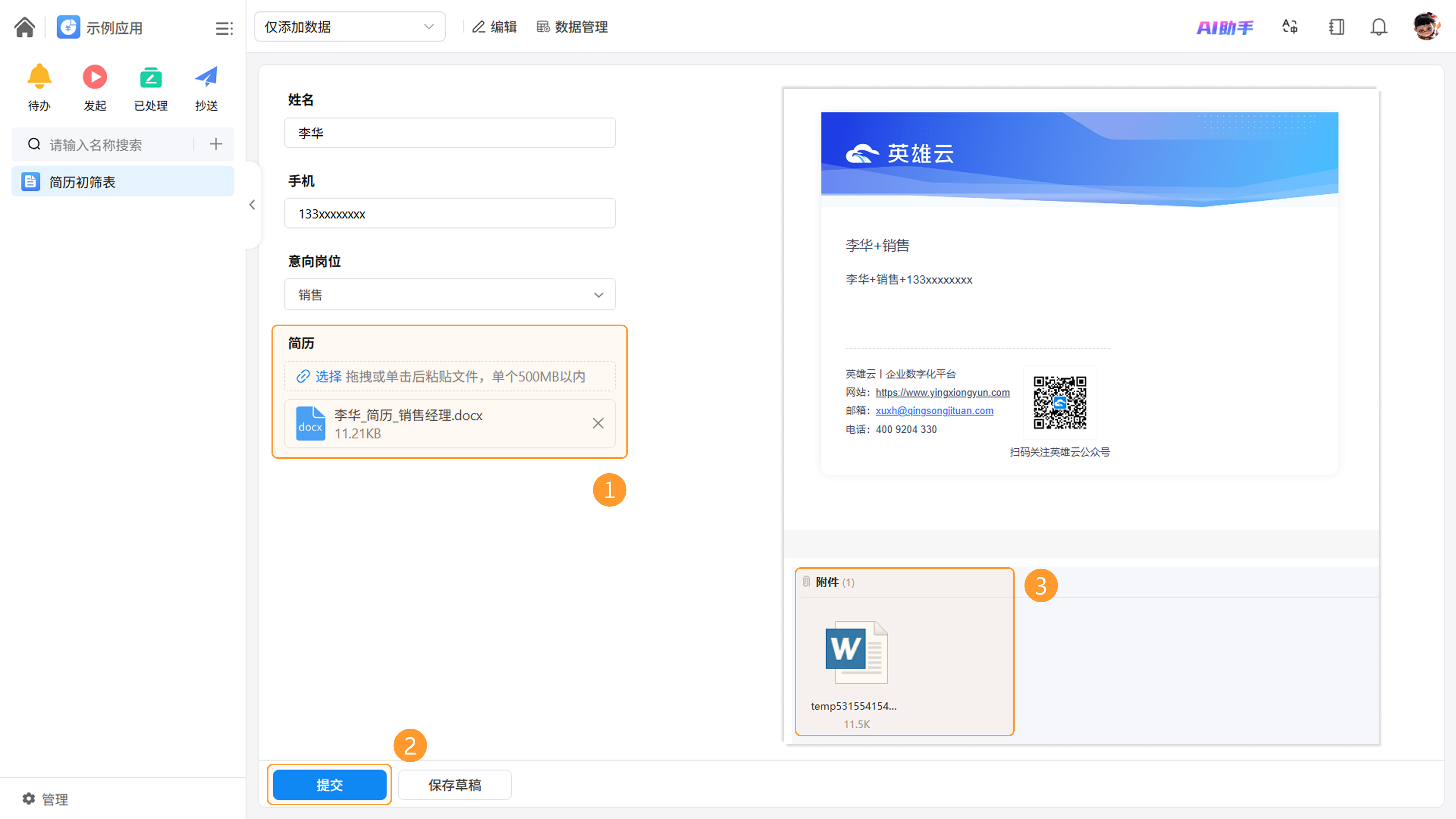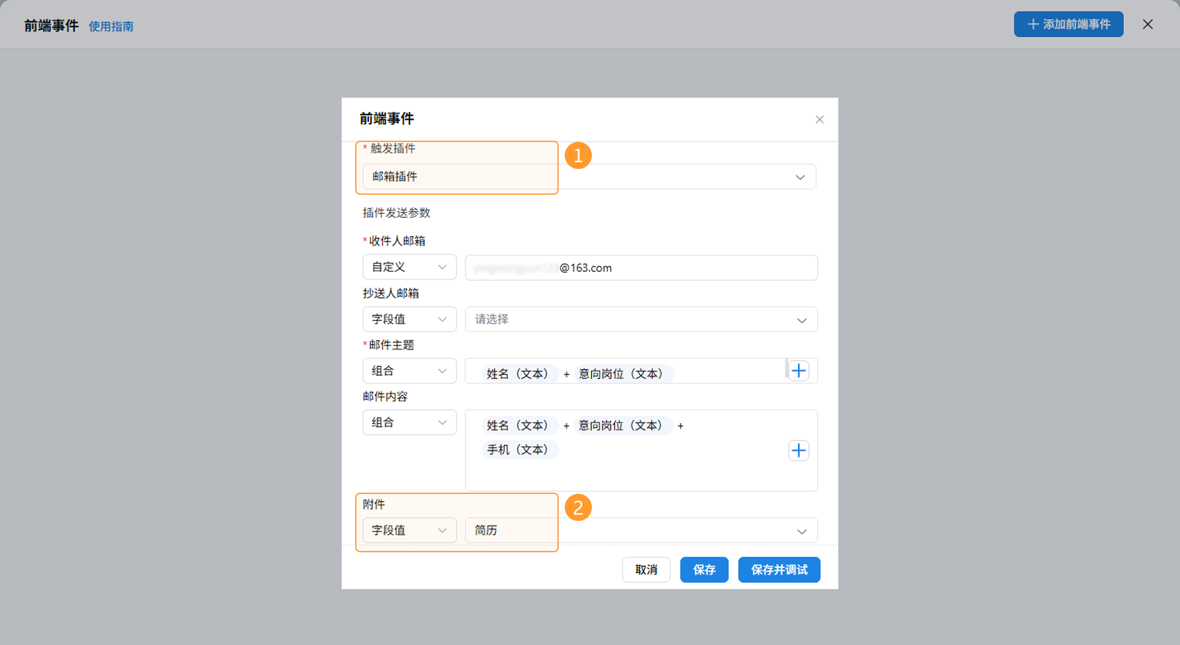 本期对邮箱插件进行了深层重构。升级后,用户在配置前端事件或工作流插件节点时,支持直接关联「附件」字段,实现了附件与审批流的深度联动,确保相关文件随流程节点同步分发,业务传递更完整。