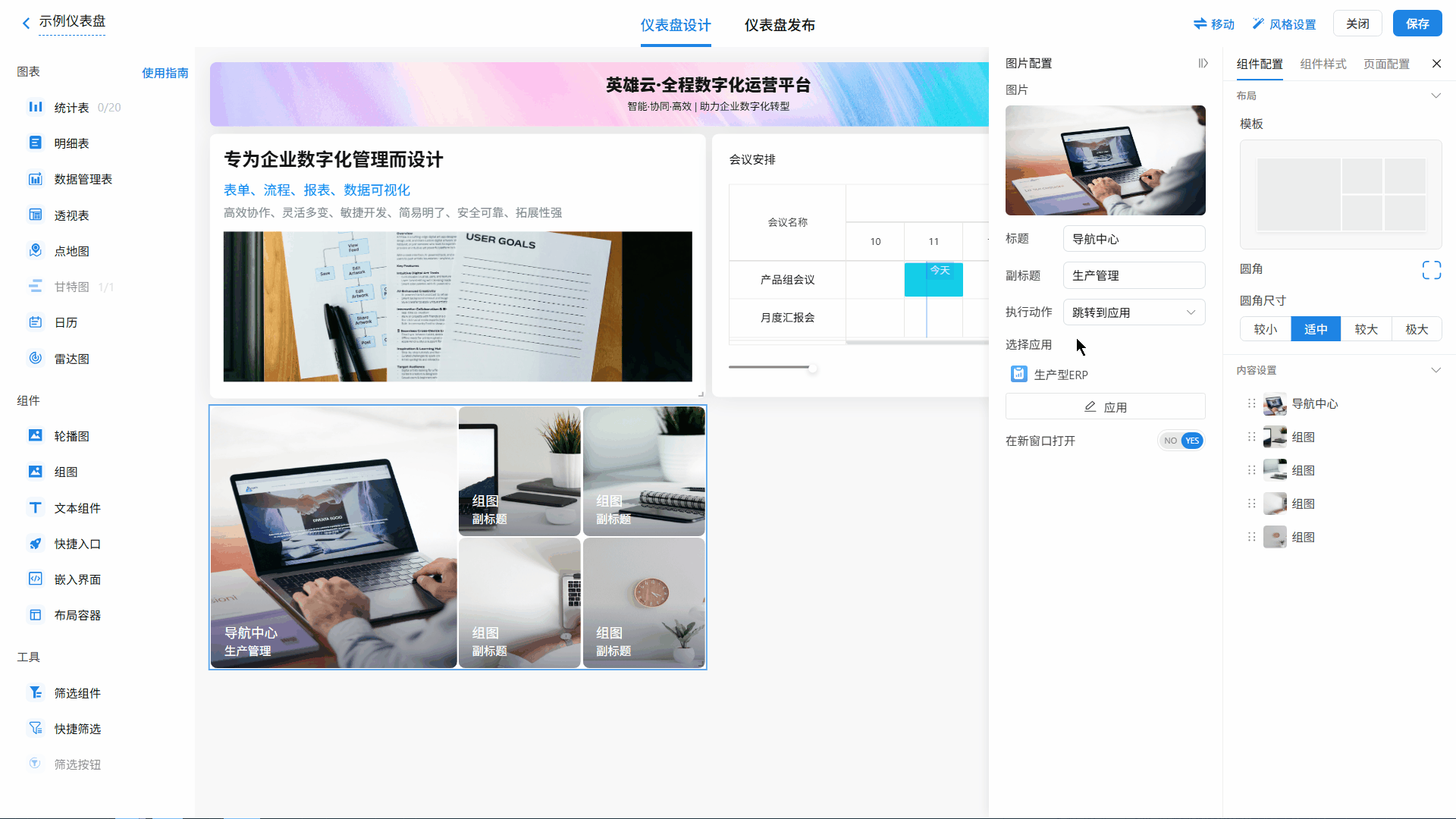 2.2 仪表盘新增组图组件