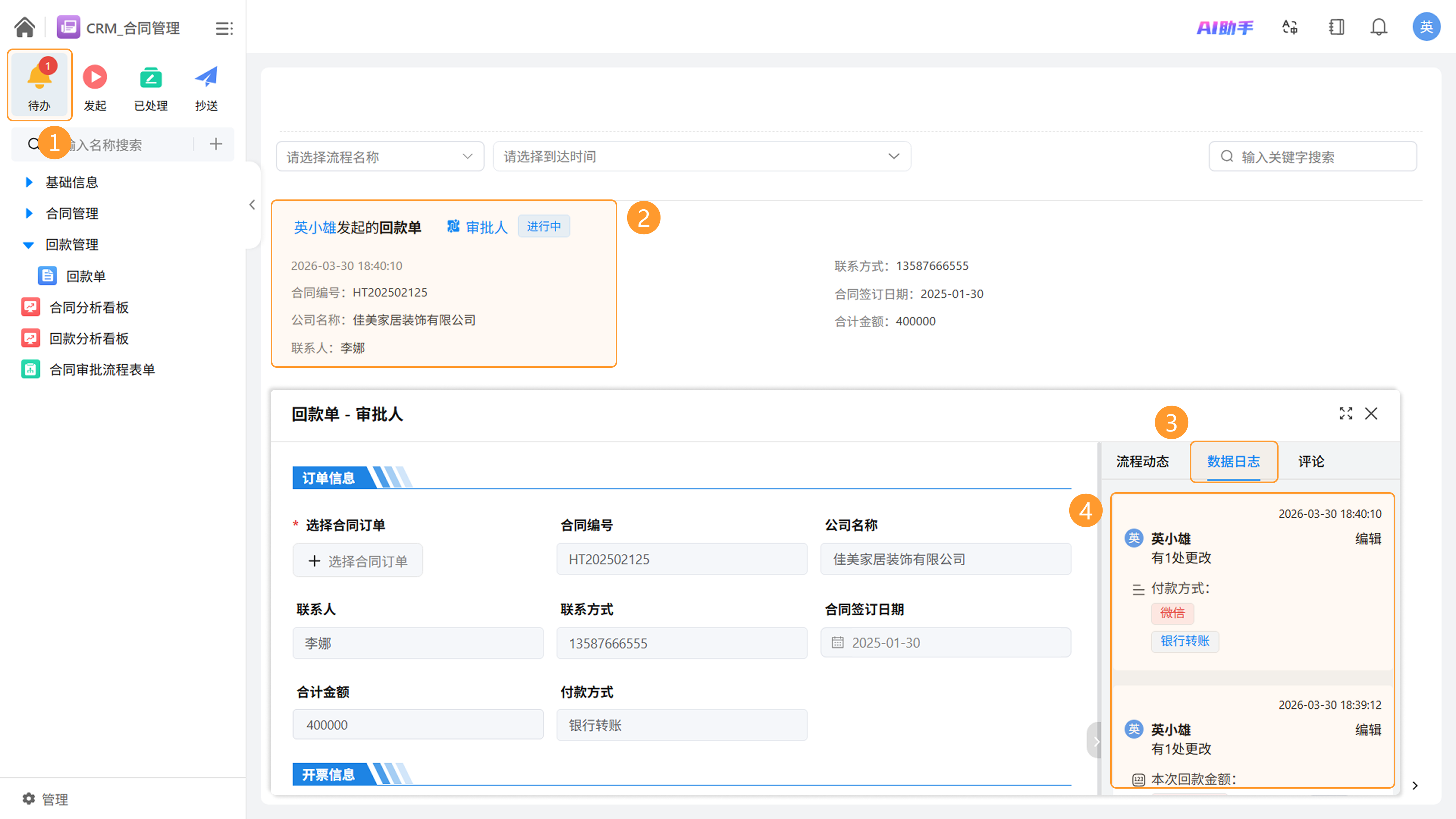 本期在工作流审批中新增了数据日志查看功能。审批人在当前流程节点可实时查看数据变更细节,确保每一笔业务调整都有据可查,显著提升审计与合规追溯效率。