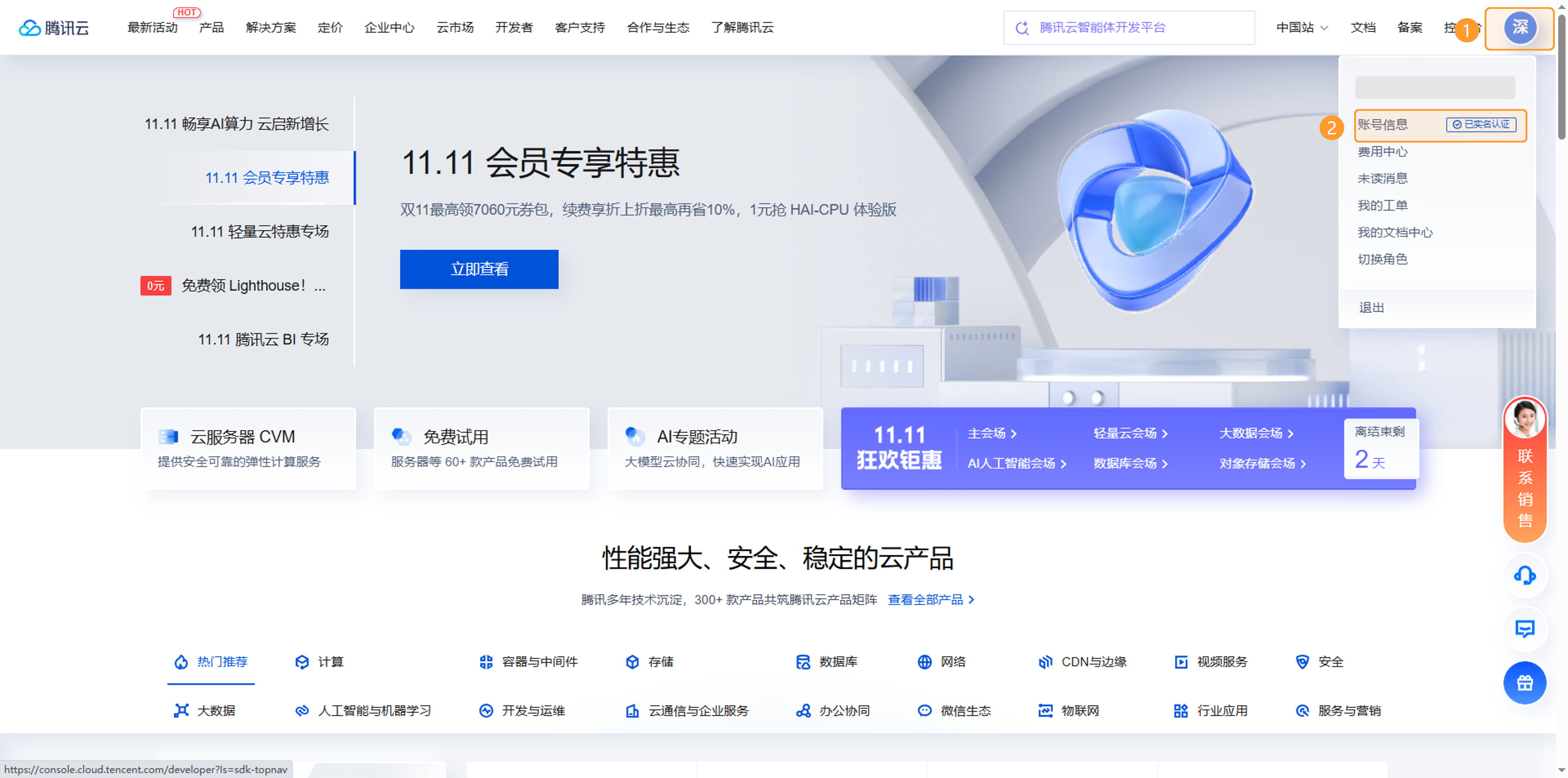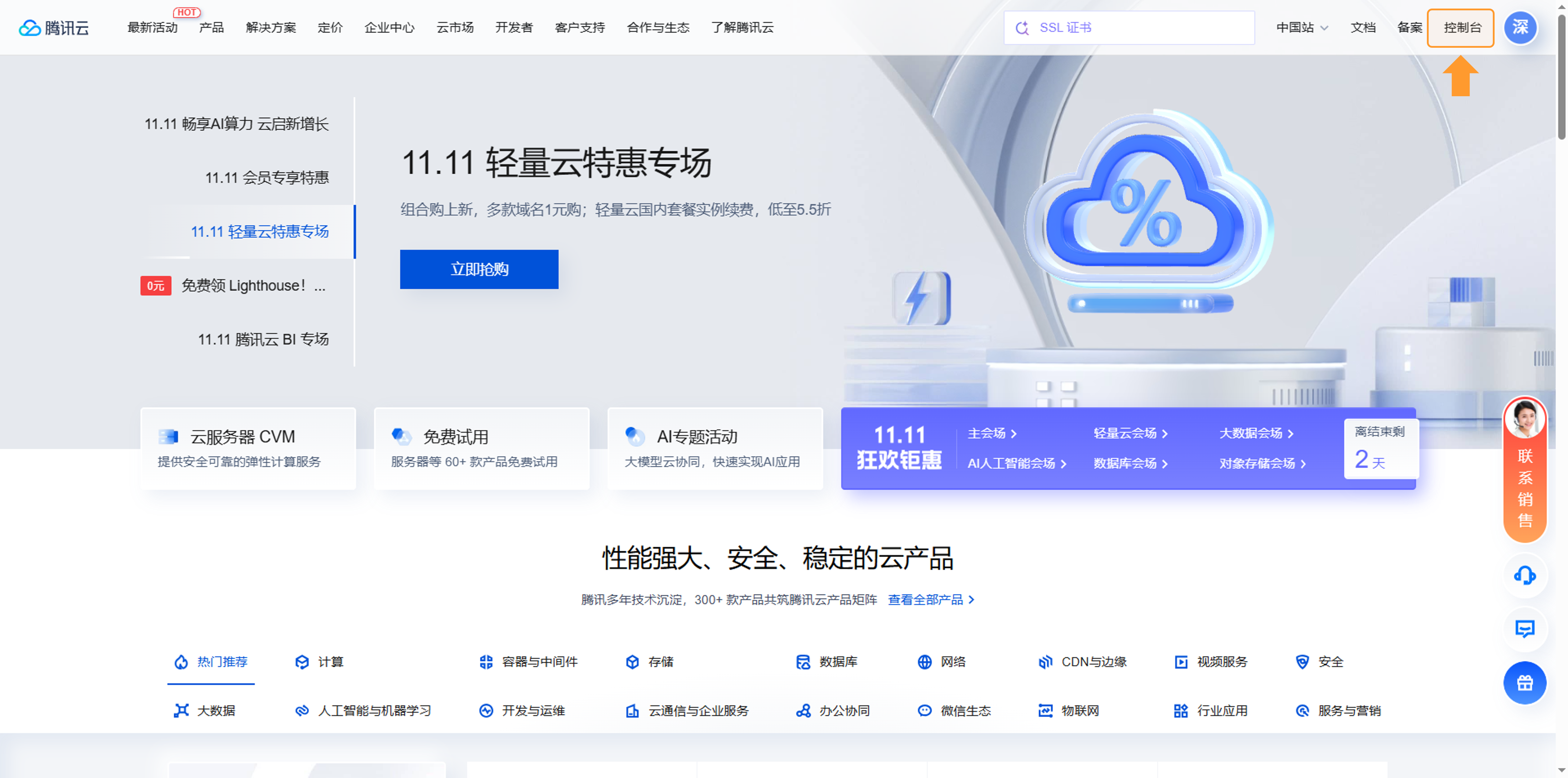 进入腾讯云控制台。
