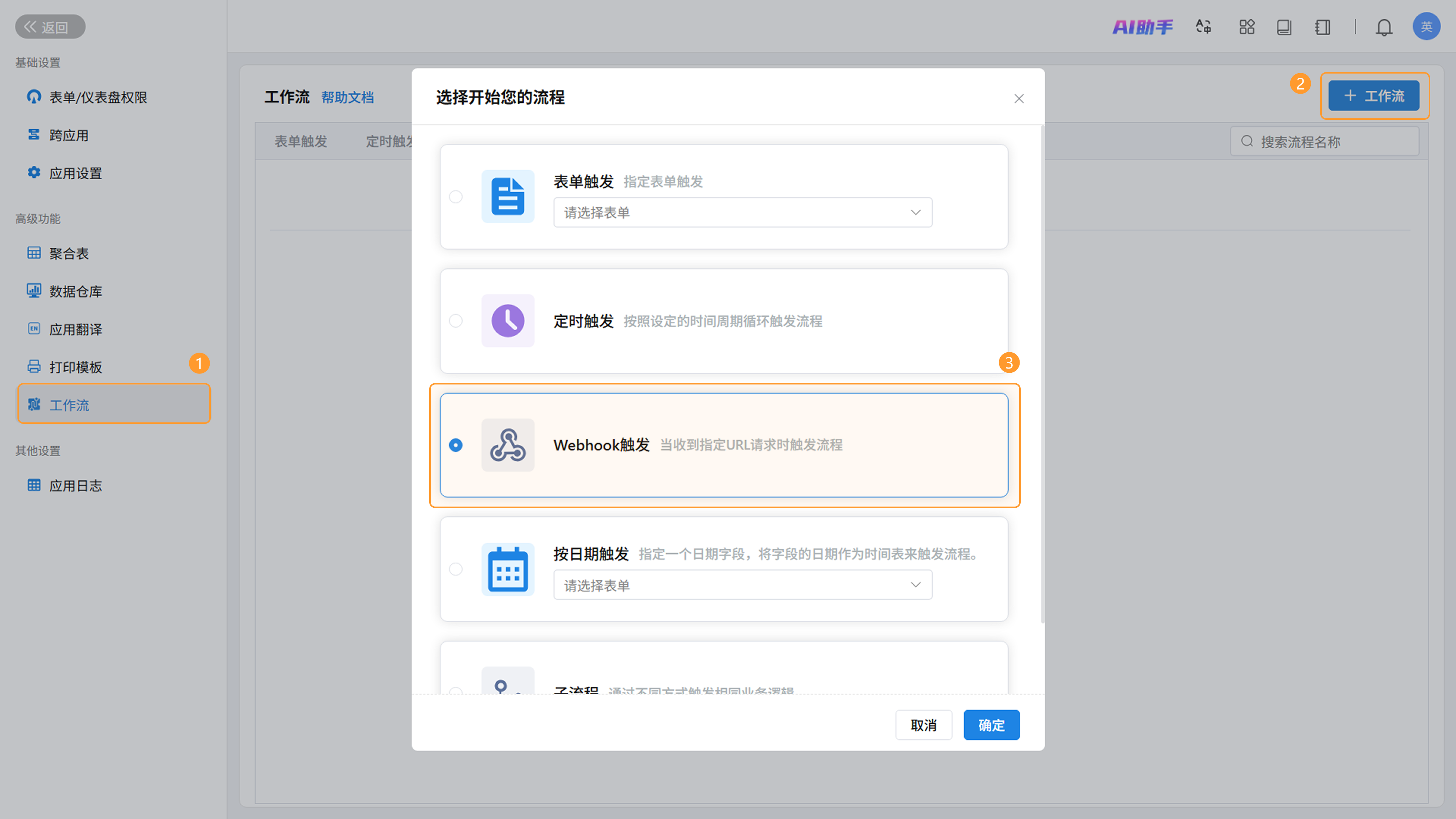 通过配置 Webhook,可以在外部事件(如支付成功、表单提交)发生的第一时间,接收相关数据并自动触发工作流,实现和其他系统的数据对接。