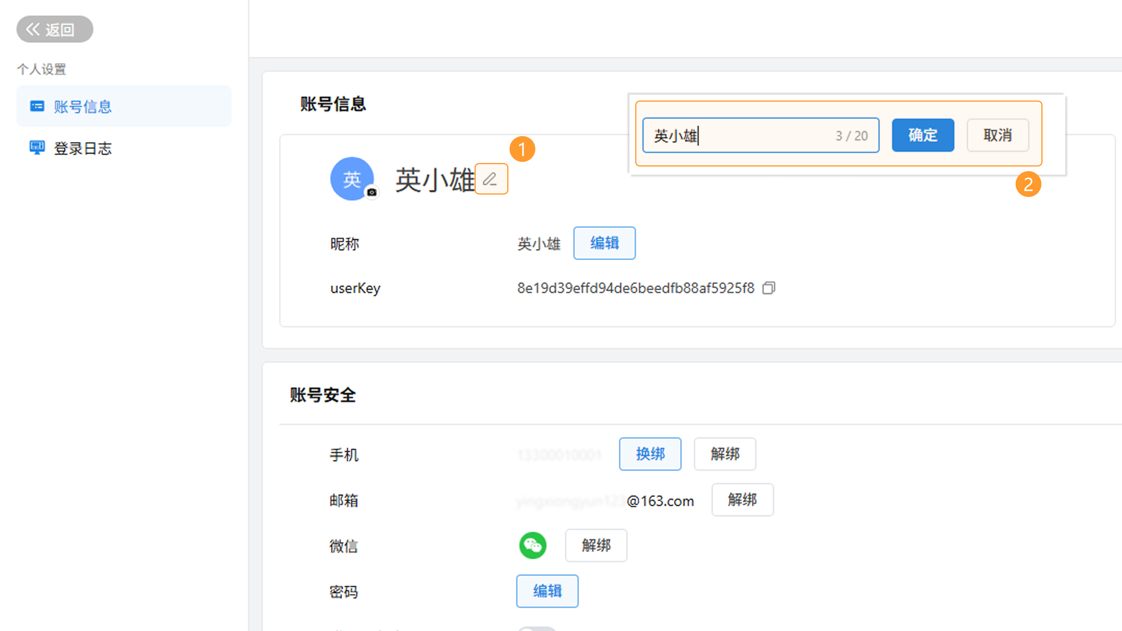 个人设置用于管理用户基本信息及账号安全相关配置。