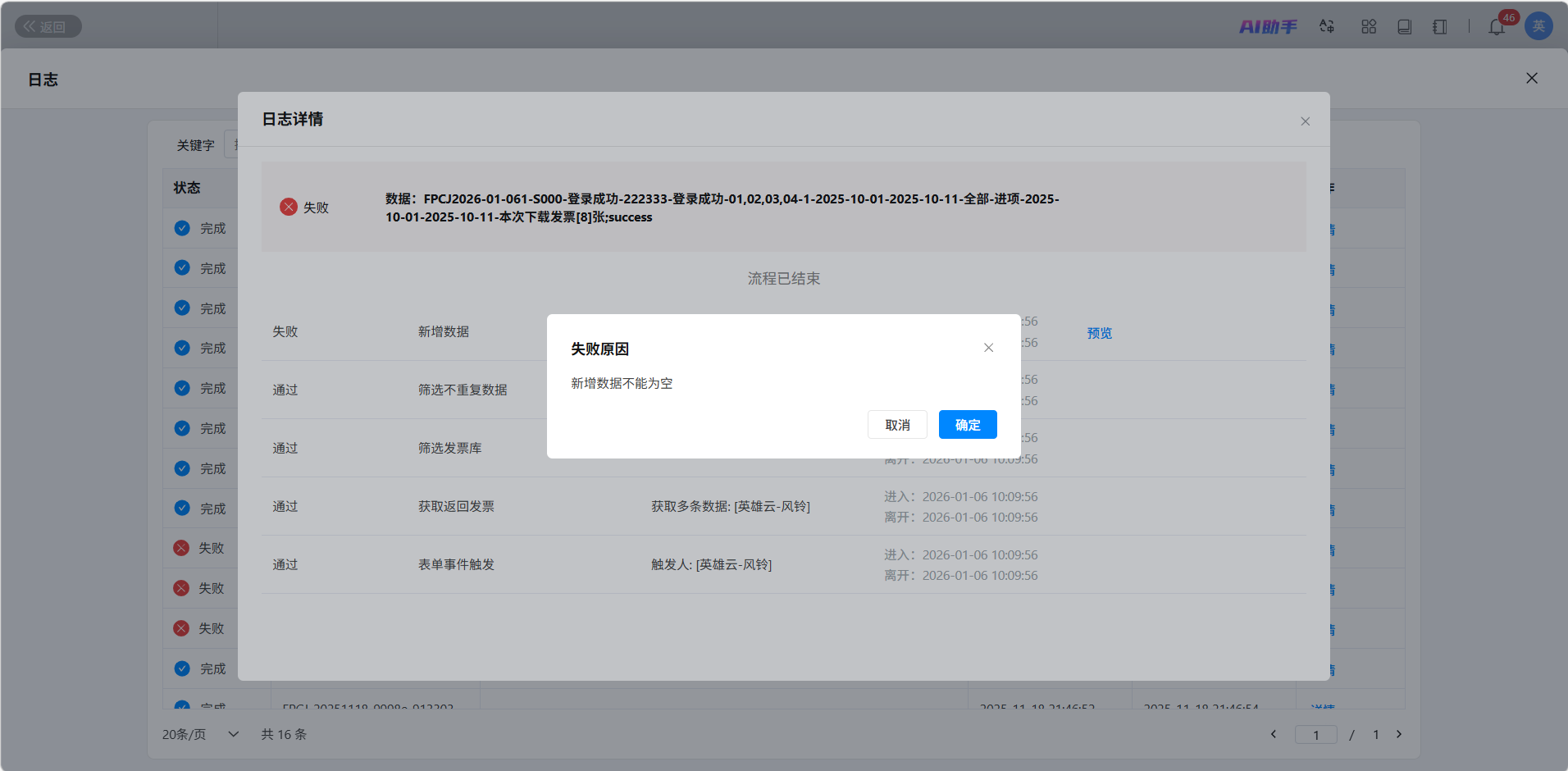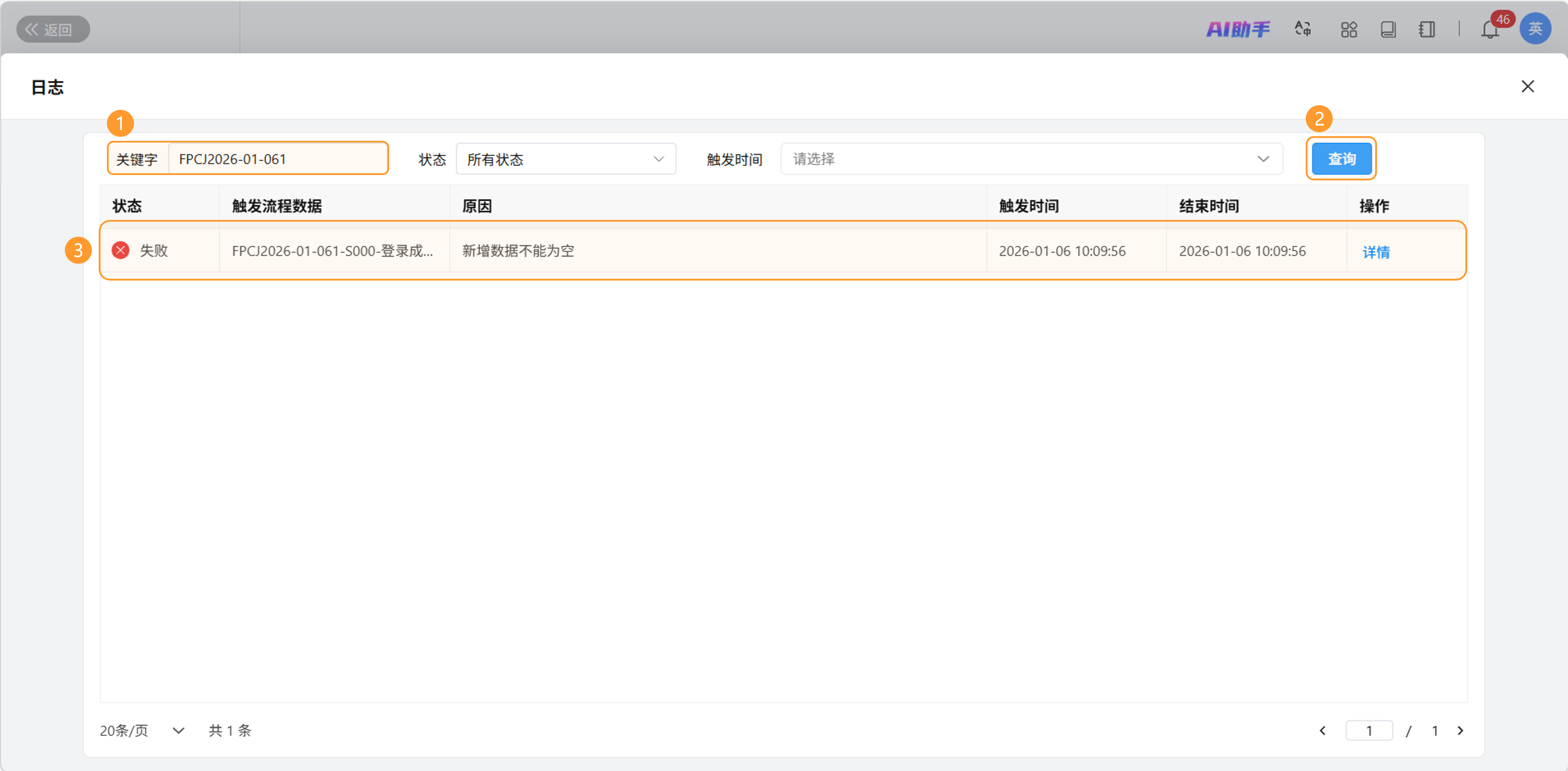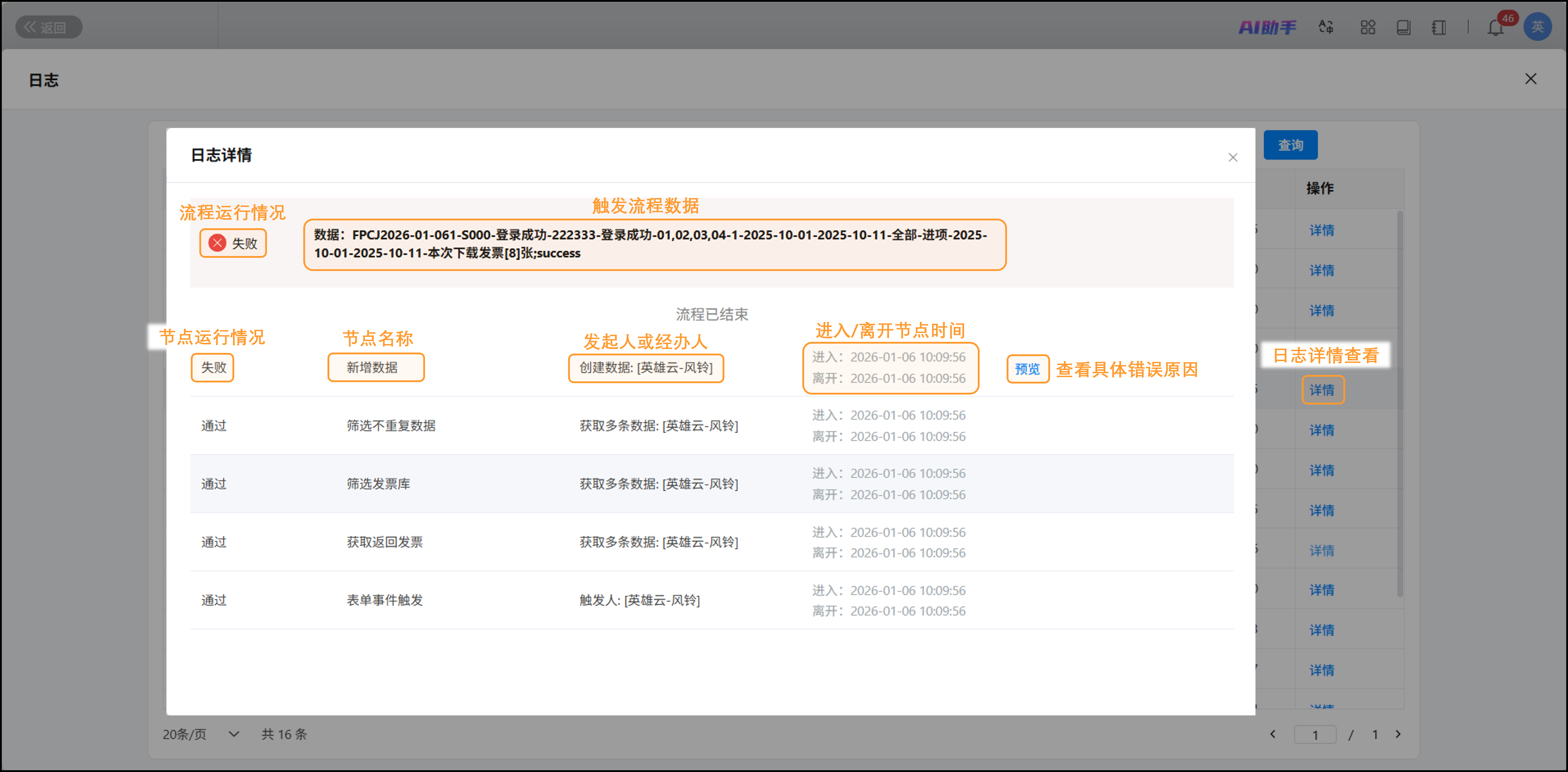 - 故障排查:当业务数据处理异常时,管理员通过“原因”字段和日志详情,快速定位错误原因。