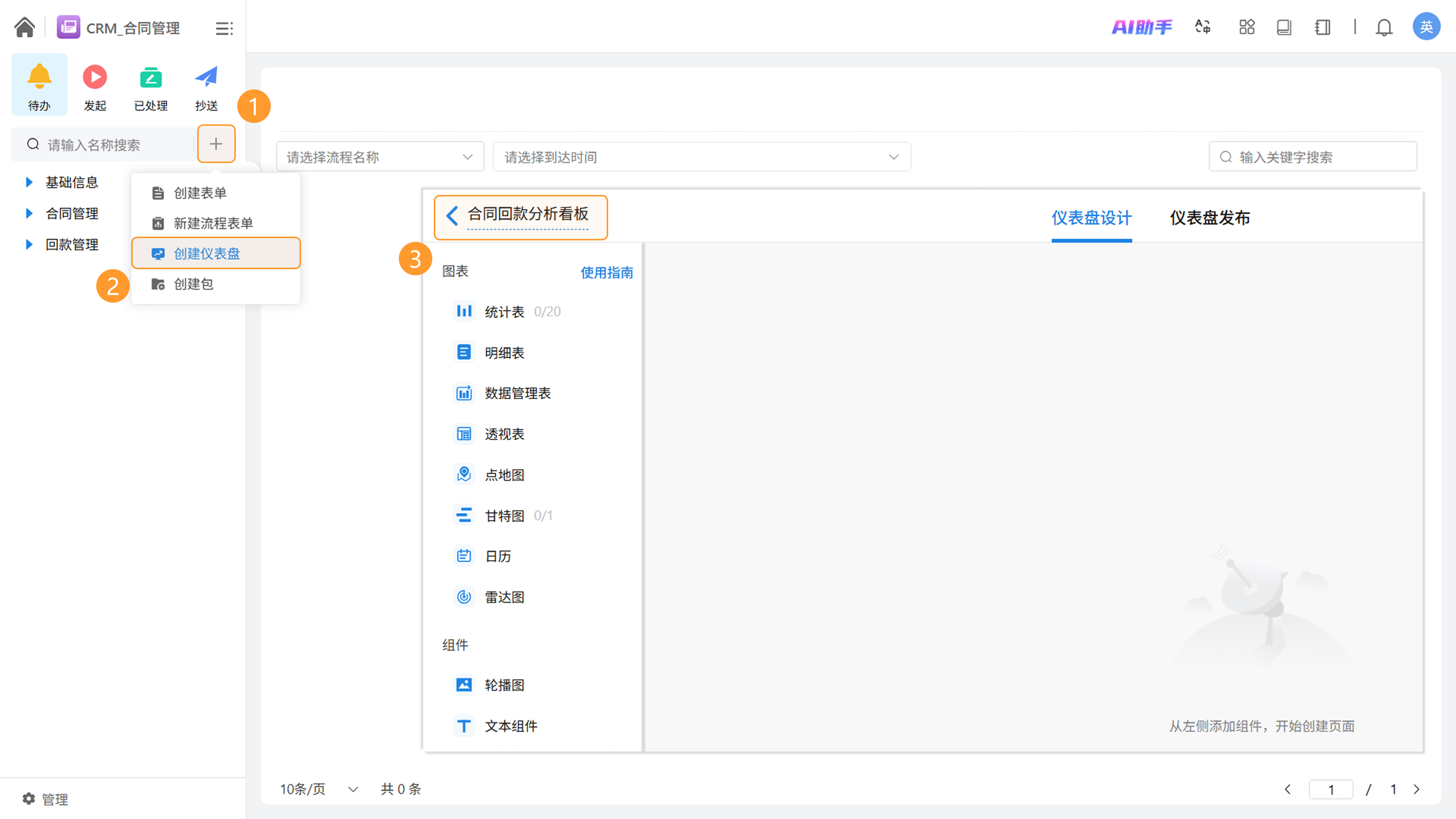 本章节将以“客户合同回款分析”场景为例,介绍仪表盘的配置步骤。