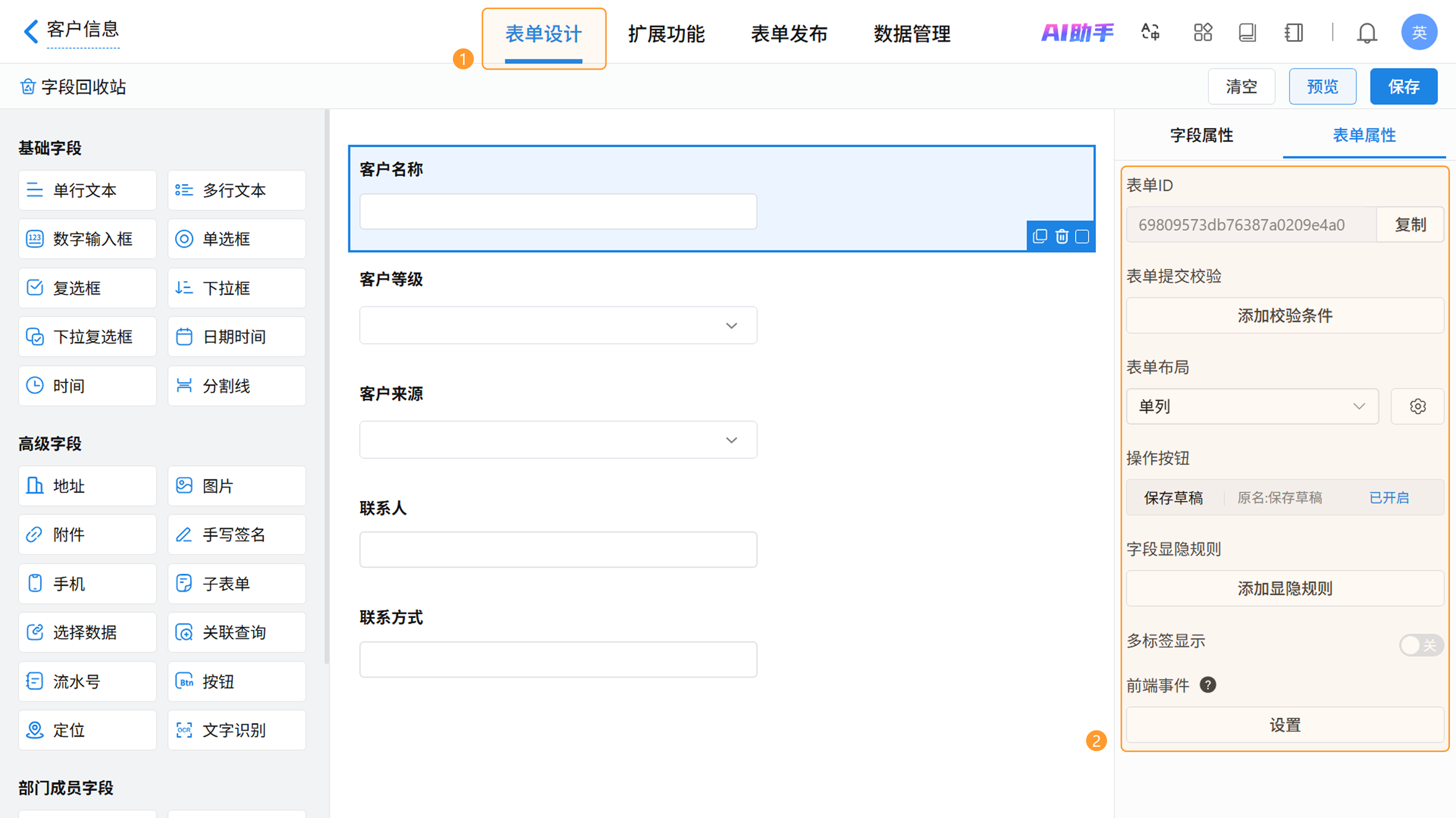 「表单ID」是系统自动生成的唯一识别码,类似身份证号。