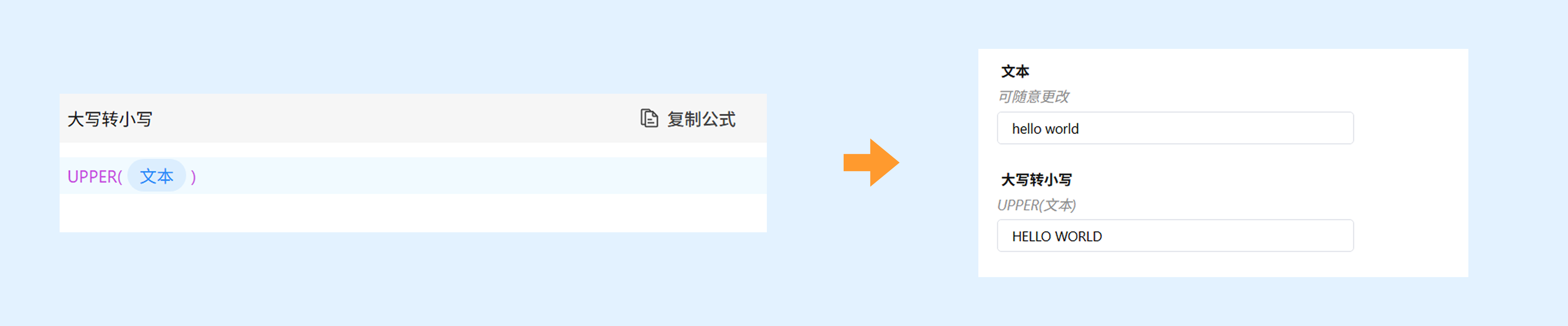 功能:UPPER 函数可以将文本中的小写字母转换为大写字母。