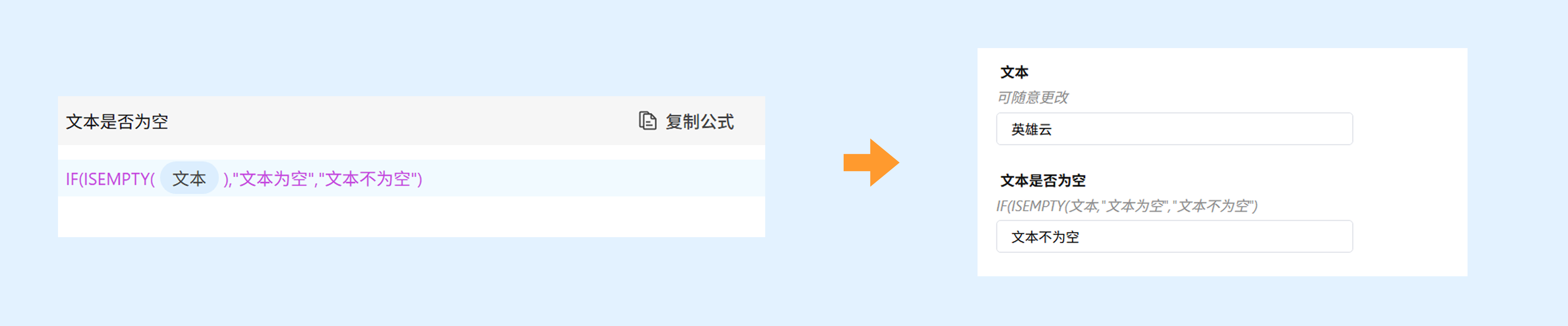 - 支持使用 ISEMPTY 函数的字段有:单行文本、多行文本、数字输入框、日期时间、时间、单选框、复选框、下拉框、下拉复选框、地址、定位、手机、成员字段、部门字段。