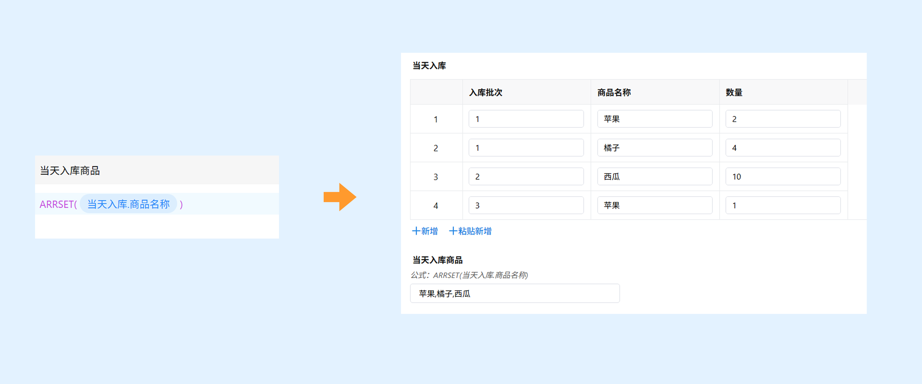 用法:ARRSET(数组)