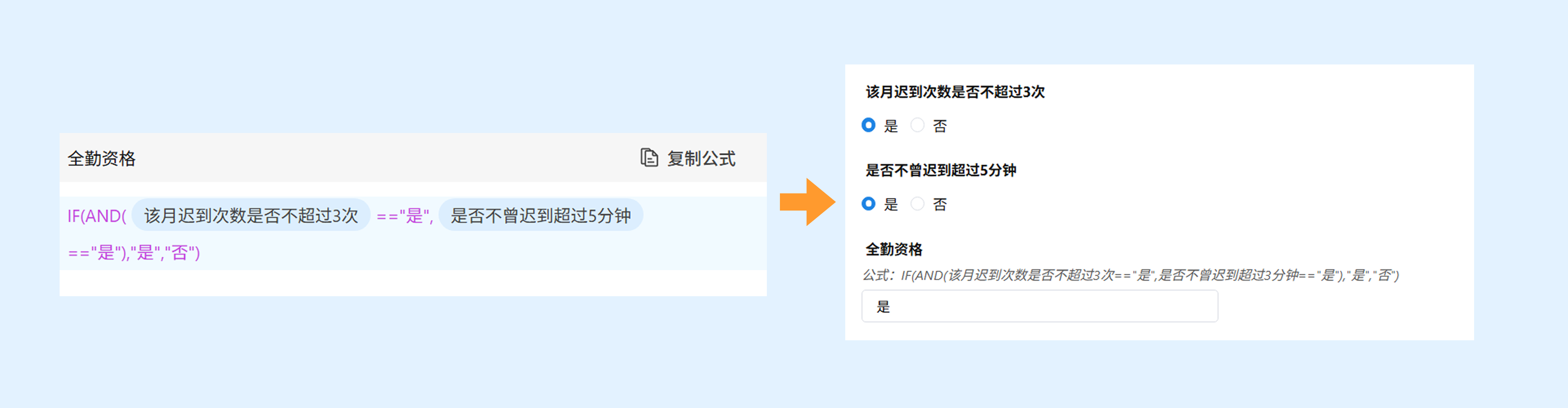 示例:AND(数学成绩>90,语文成绩>90)。当两门成绩都大于90时,返回 true。