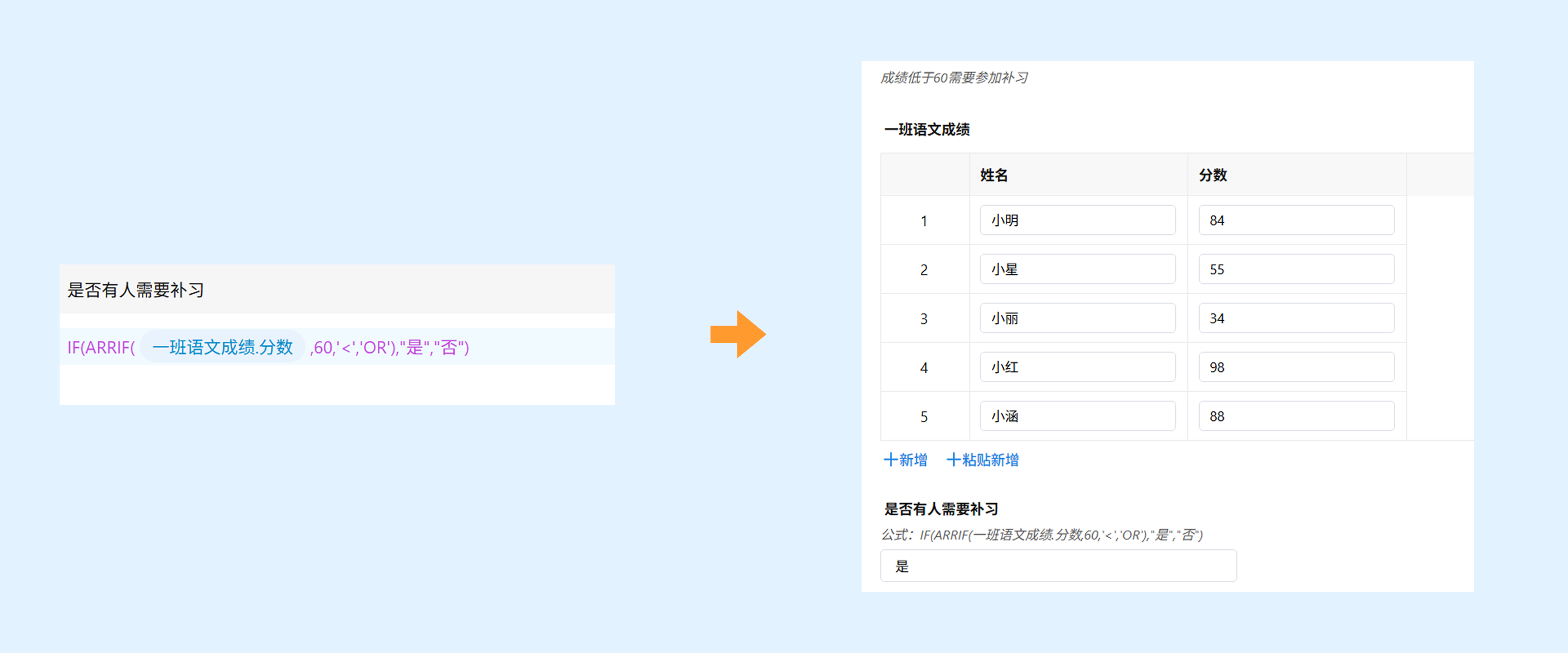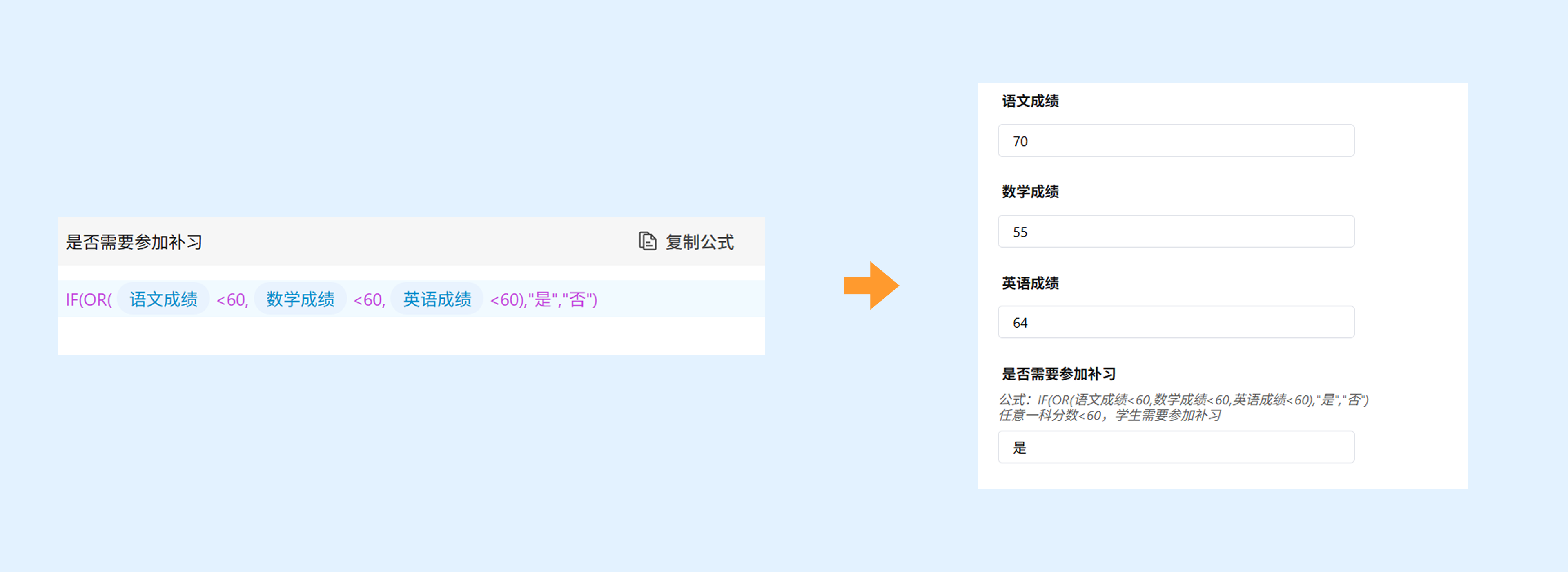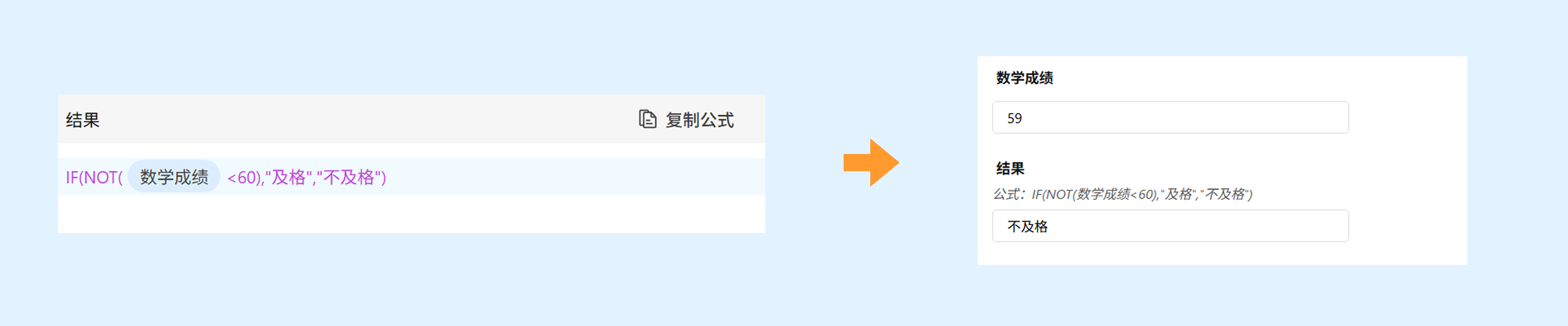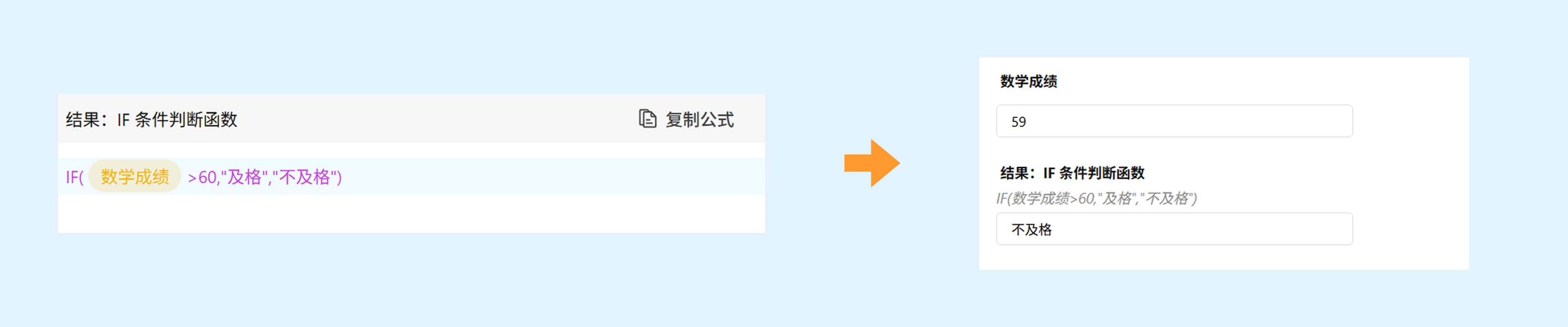 示例:IF(数学成绩>60,"及格","不及格")