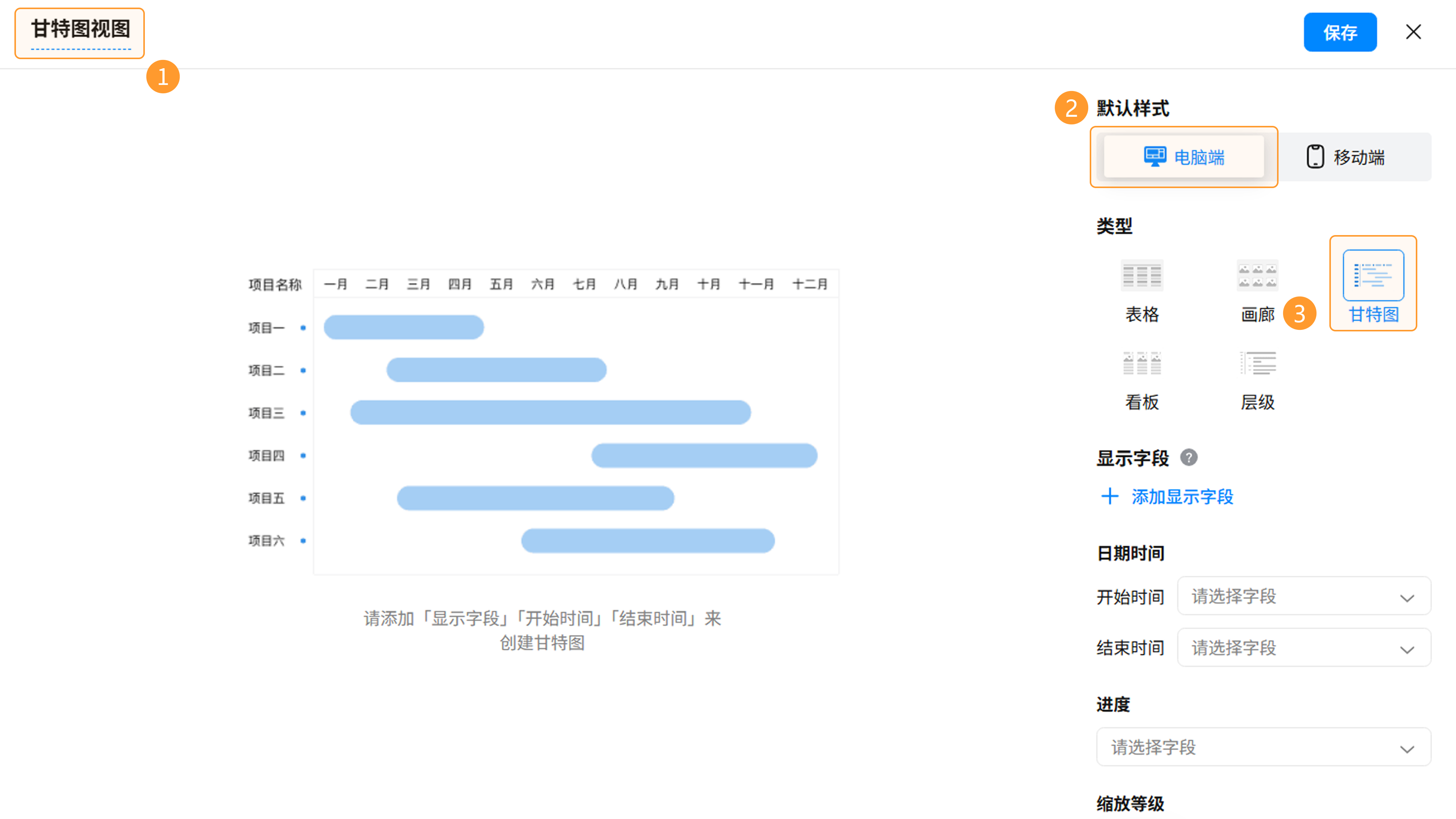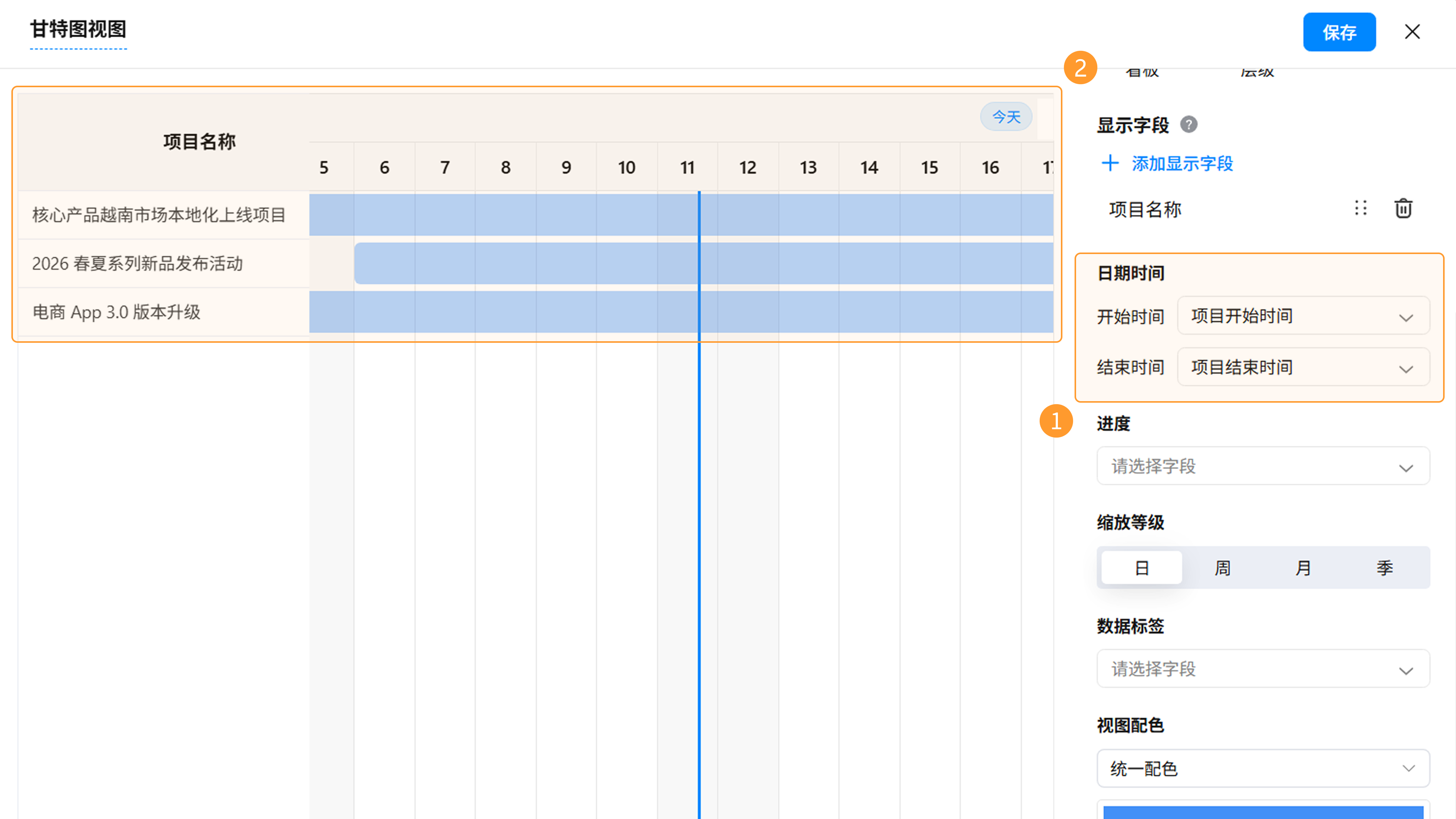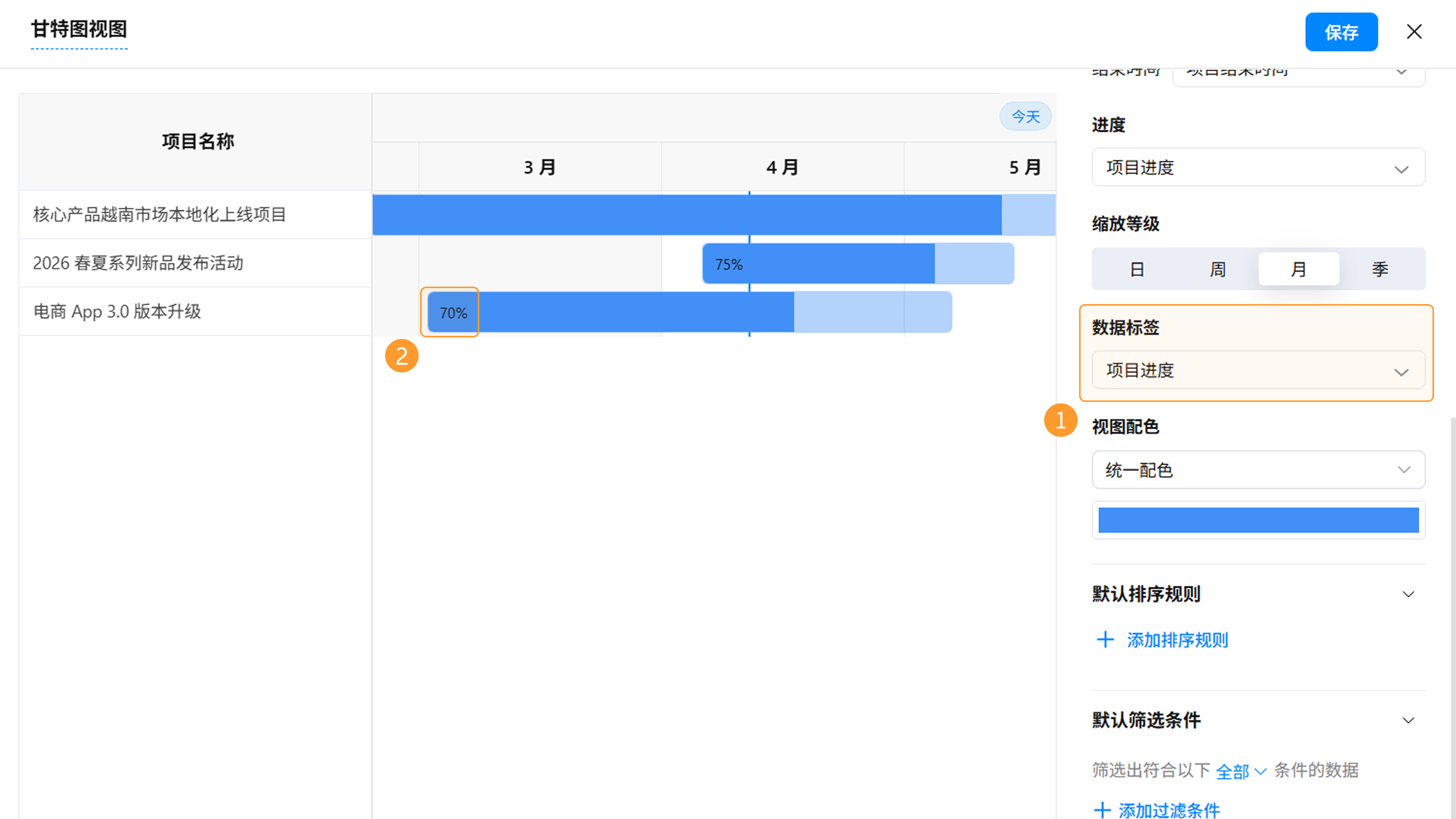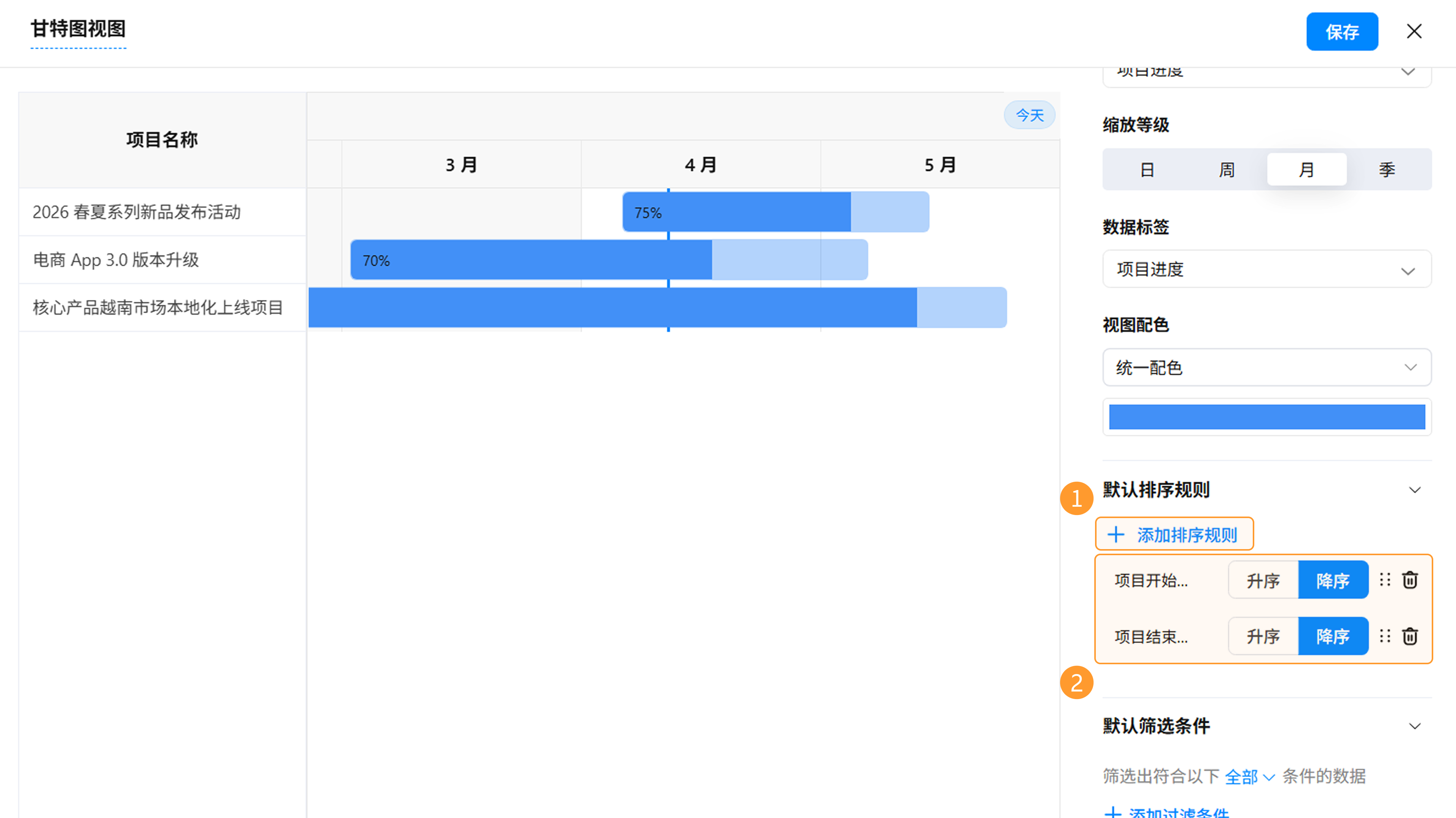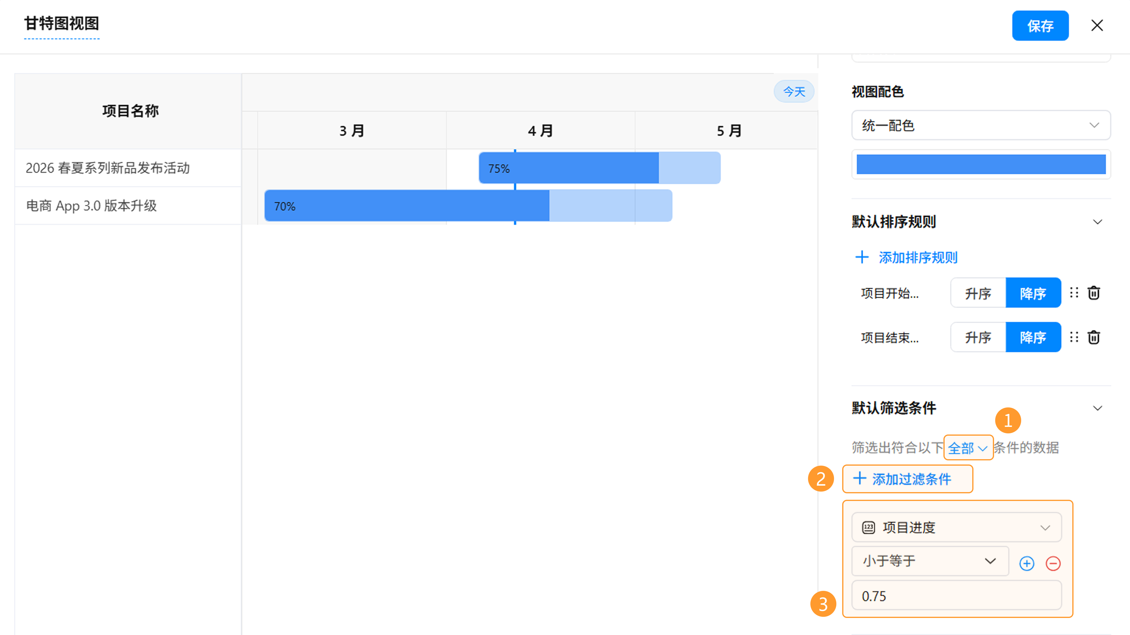 甘特图视图设置完成后,点击「保存」按钮。