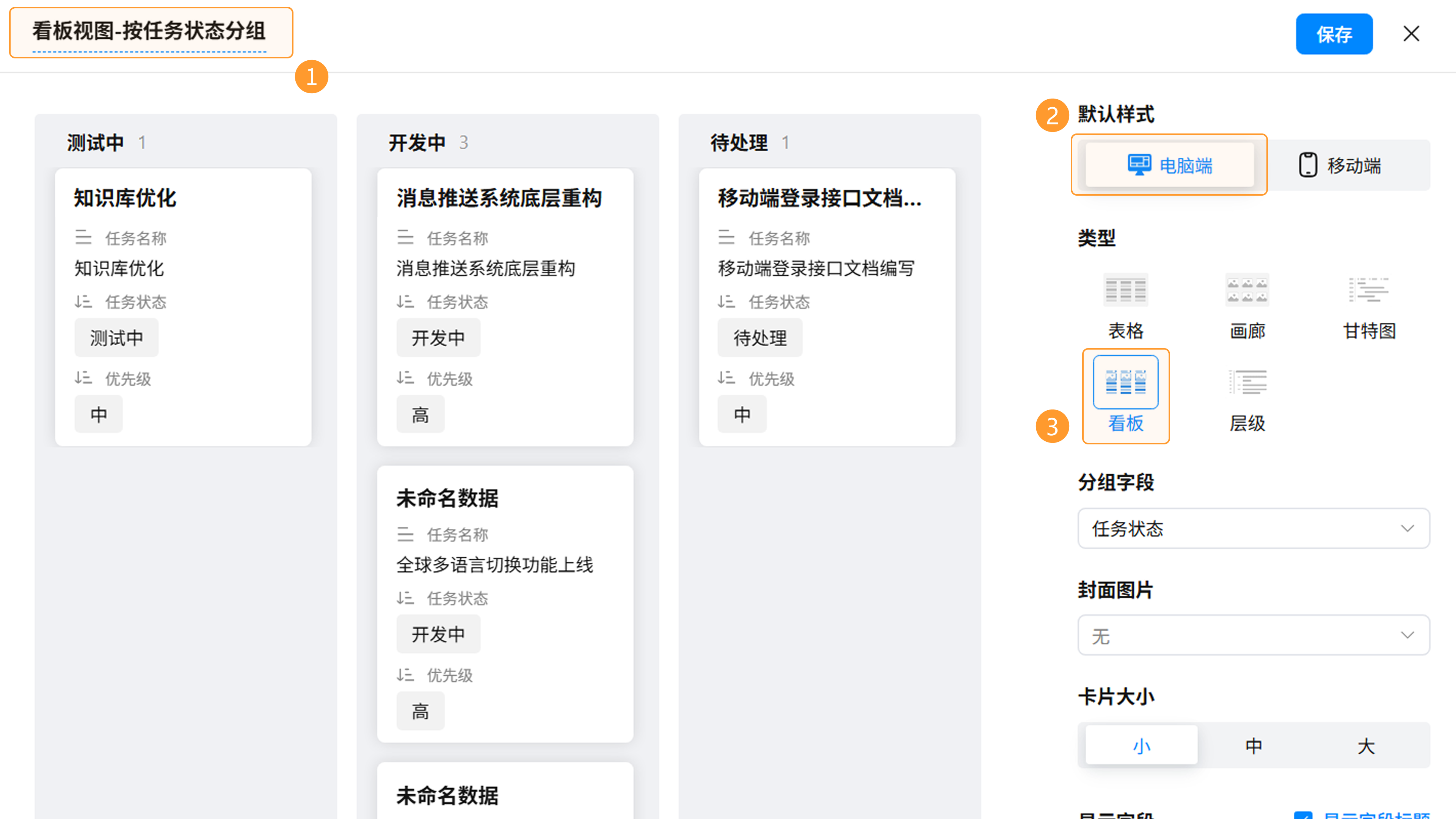 - 视图名称:在页面左上角修改视图名称(比如“看板视图”)。