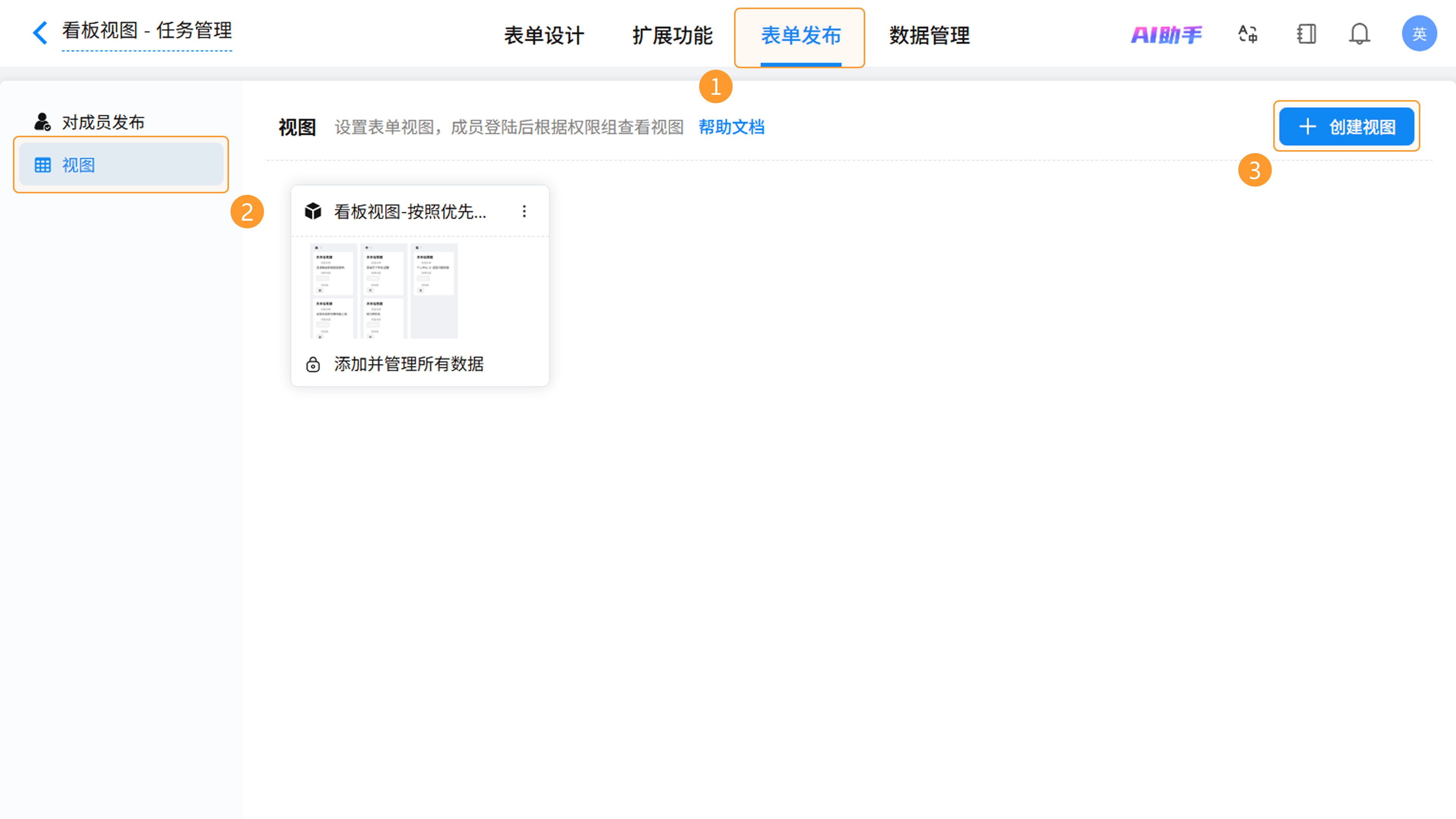 1)保存当前视图后,进入「表单发布 >> 对成员发布」页面。