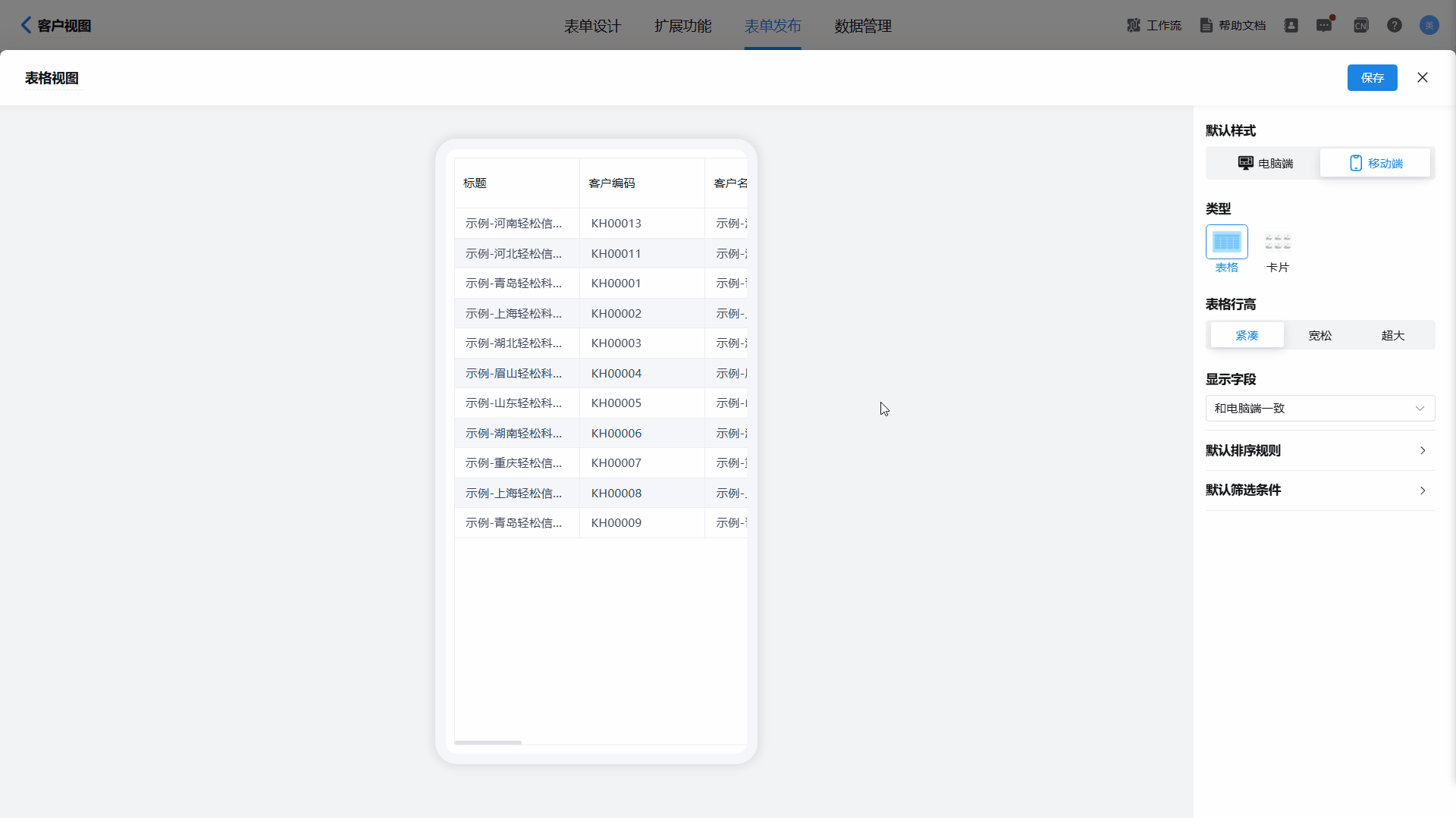 若选择显示“和电脑端一致”,则展示的字段就是该视图电脑端显示的字段。