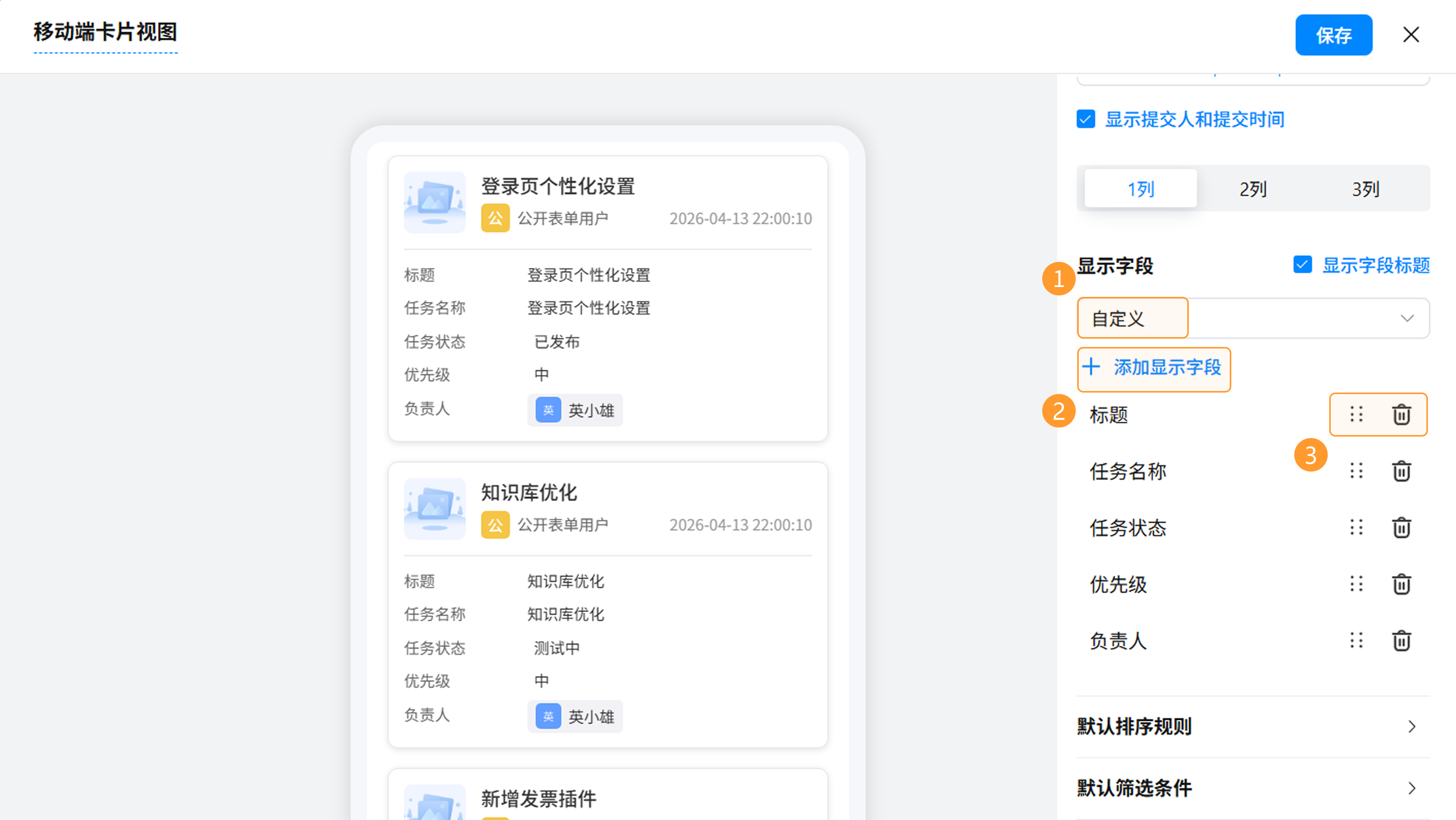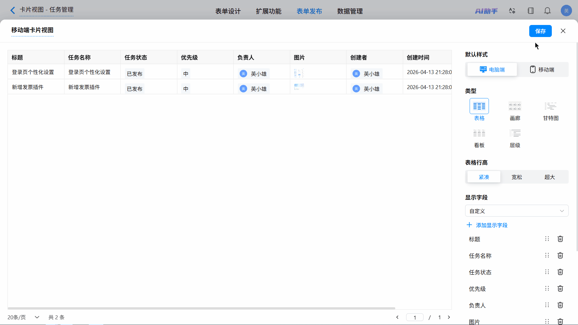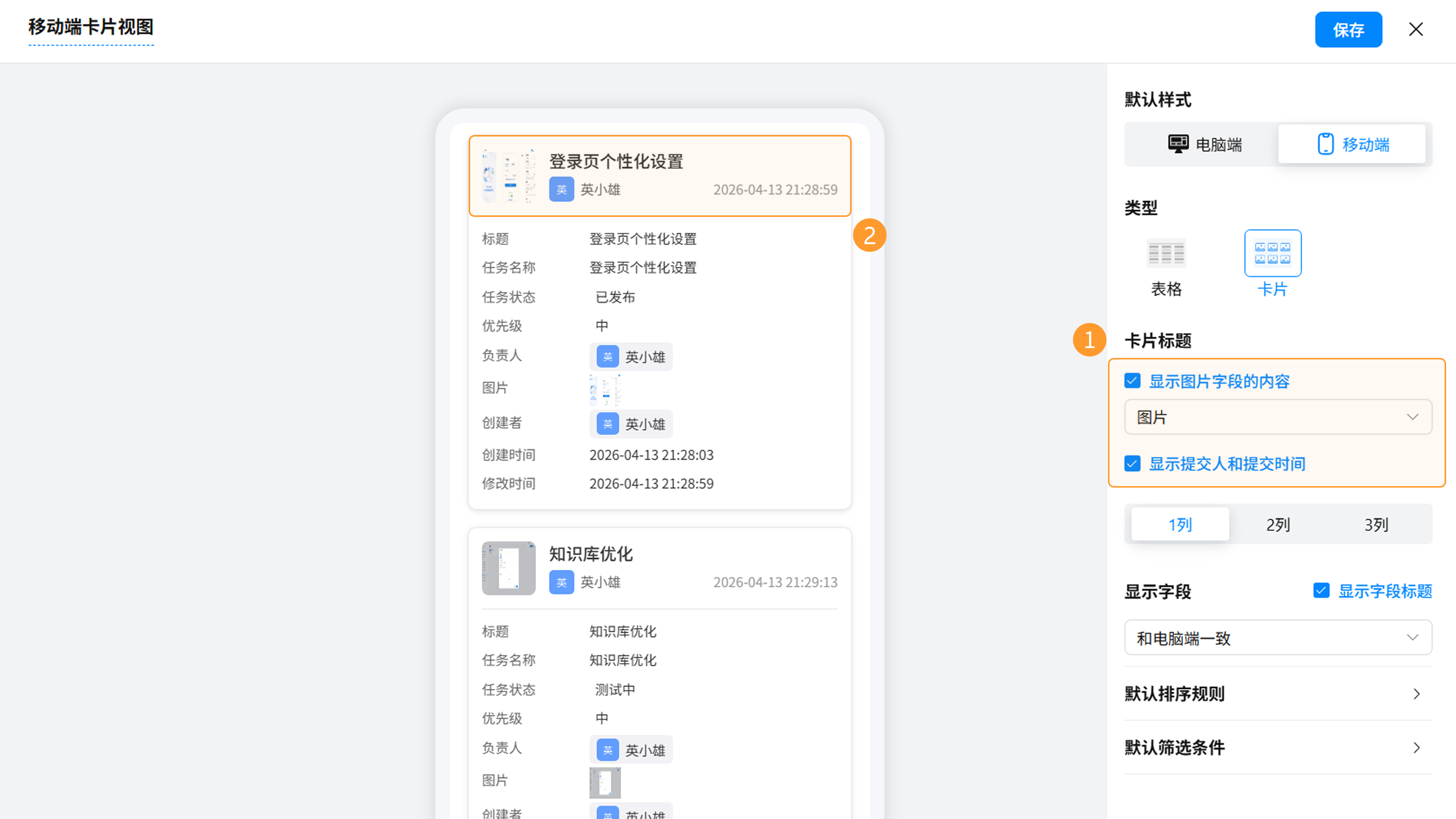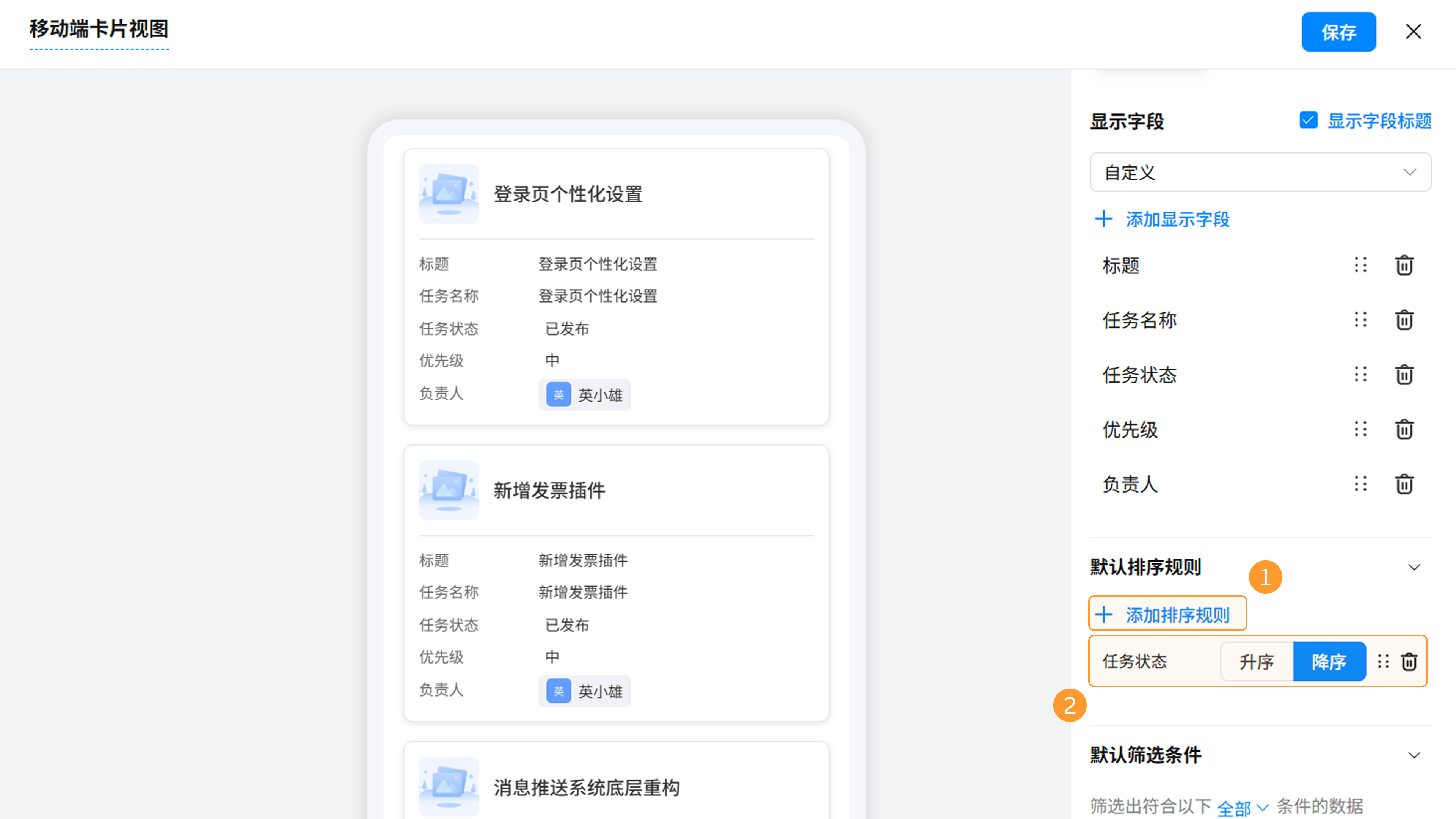 移动端卡片视图设置完成后,点击 「保存」 按钮。