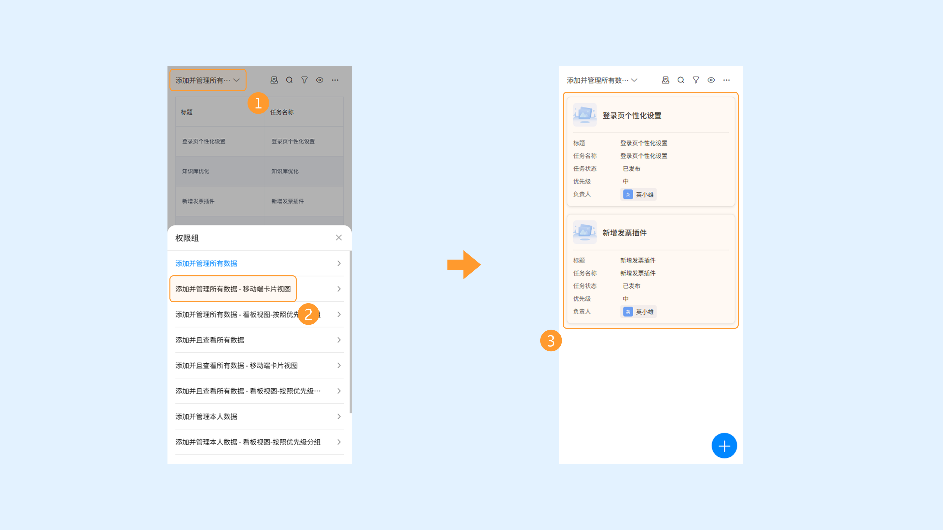 - 字段权限:若成员在权限组中没有某个字段的查看权限,即使视图配置了该字段,成员在表单页面也将无法查看。