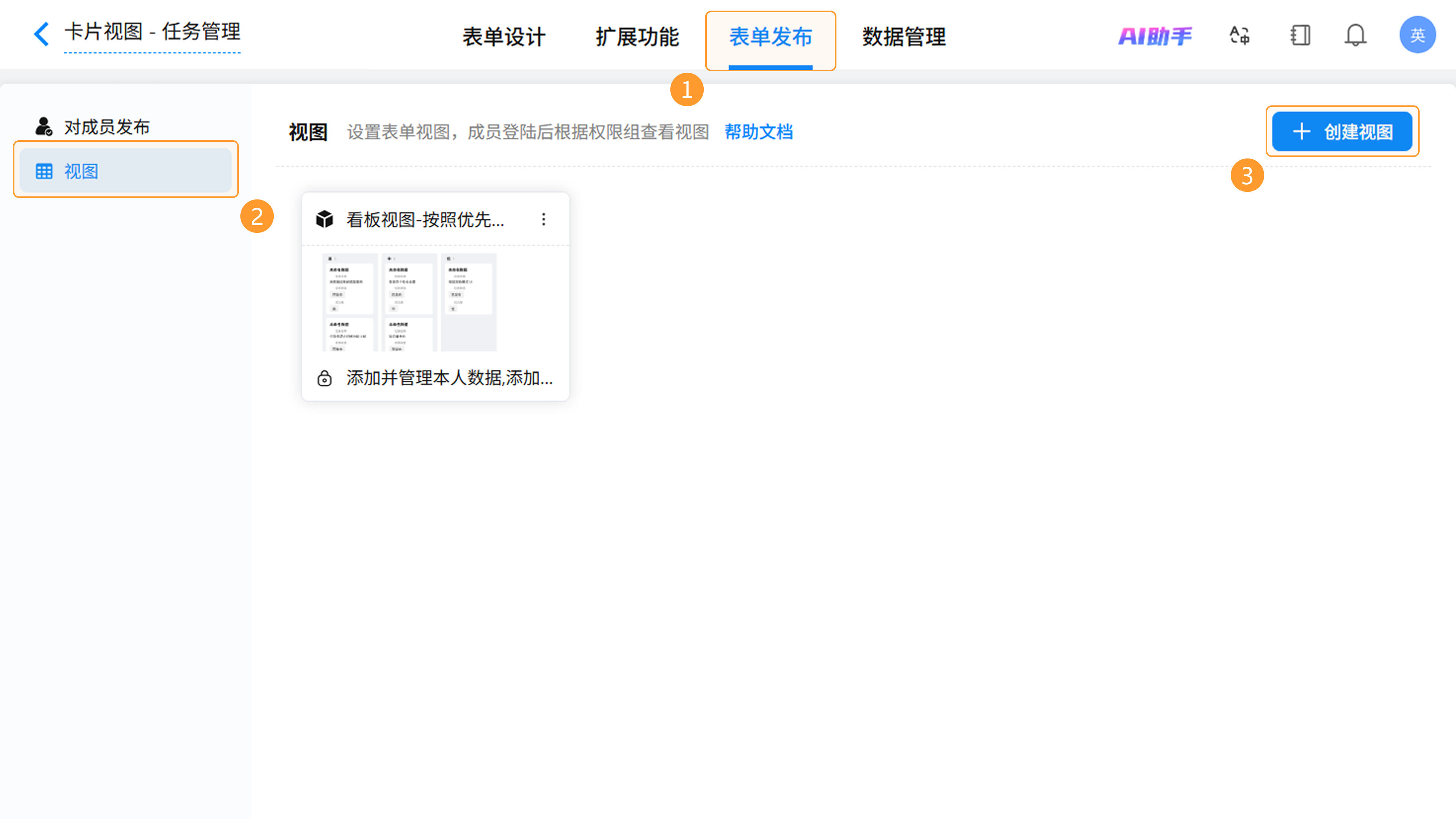 - 方式二:在表单编辑页面的 「表单发布 >> 视图」 处点击 「+ 创建视图」。