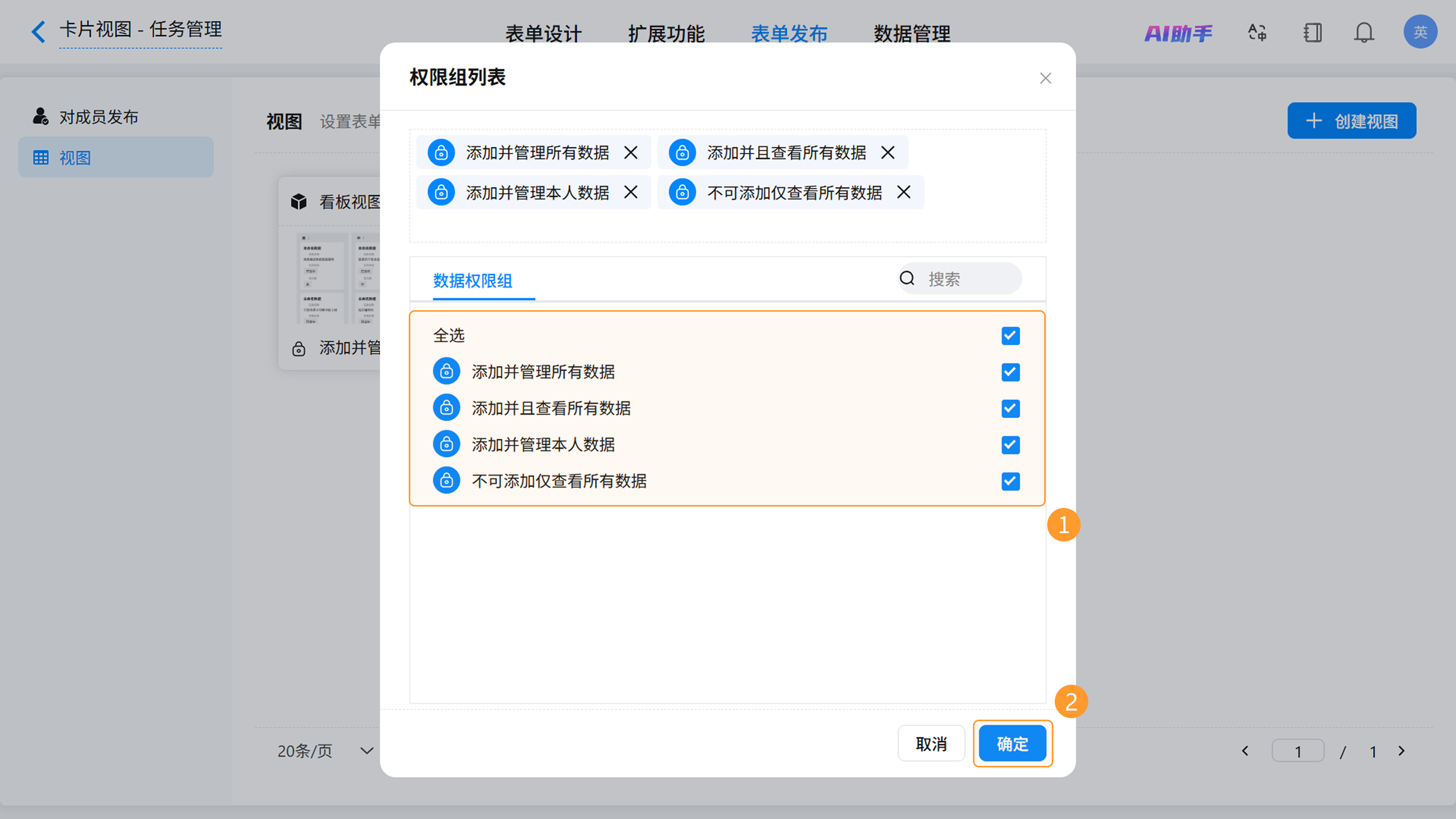 视图使用范围设置完成后,对应成员在表单页面的权限组中可查看该视图。