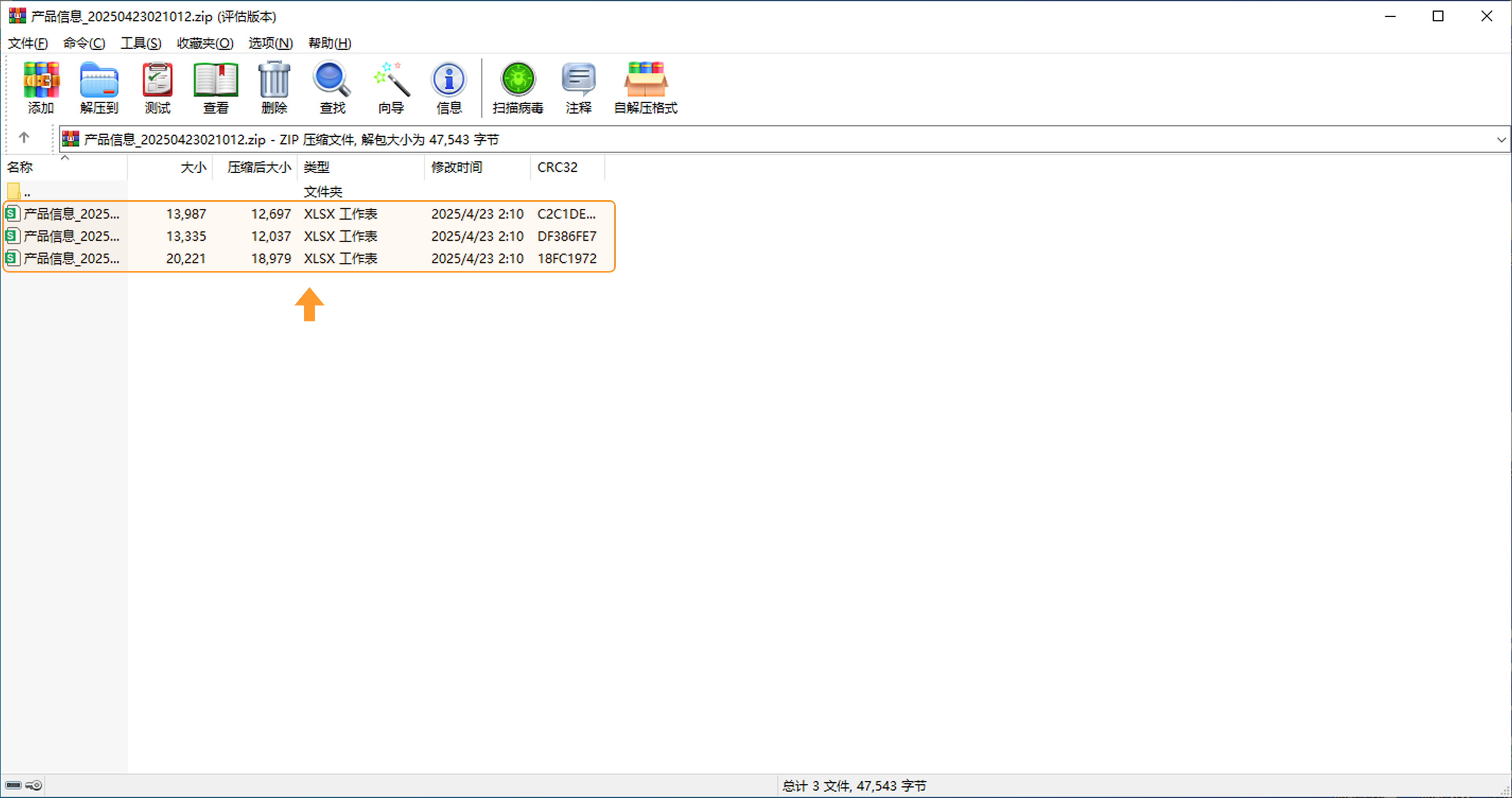 若用户选择将数据拆分成多个文件进行打印,那么每条数据将生成单独的 Excel 文件,并保存在同一个Zip压缩文包中。