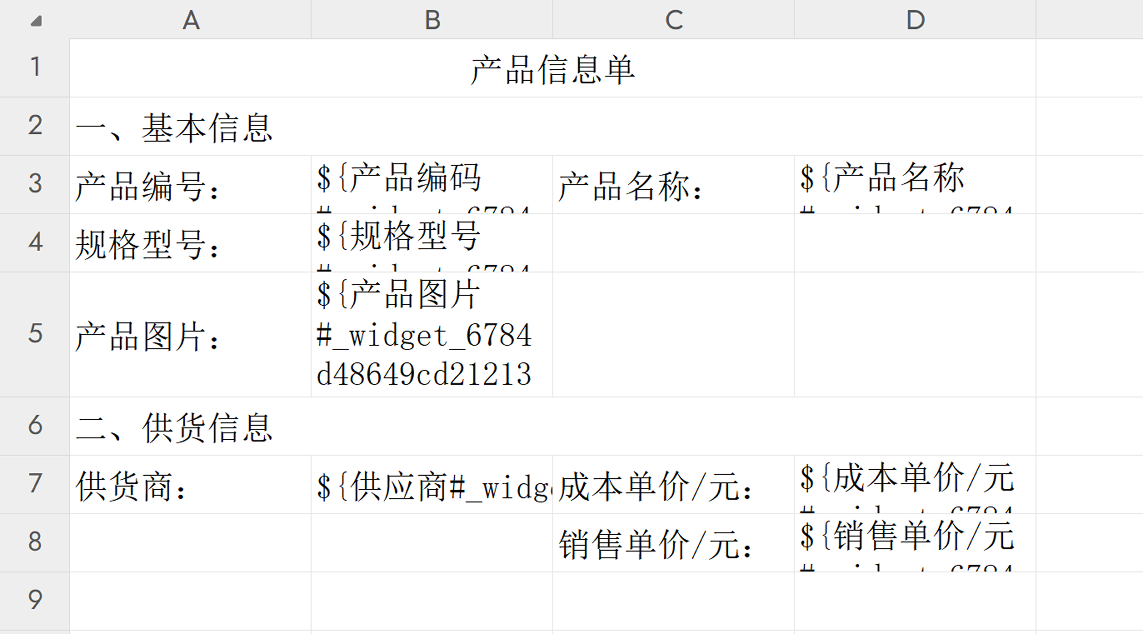 1)用户需要在本地Excel文件中设计打印模板,预先设计好文档的格式与数据位置等样式信息。