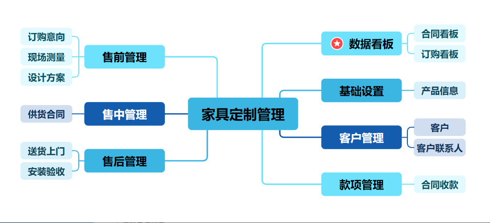 本系统适用于涉及复杂定制、多环节协作、长服务周期的行业,特别是:全屋定制、高端家具定制、办公家具定制、橱柜衣柜定制等细分领域;可辐射家具制造业、室内设计公司、零售家具店的基本需求。对于追求服务标准化、流程数字化,致力于提升客户管理水平和服务水平的企业,不失为一款合适的管理工具。
